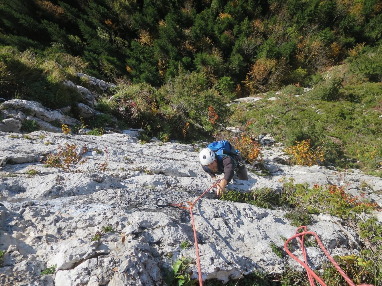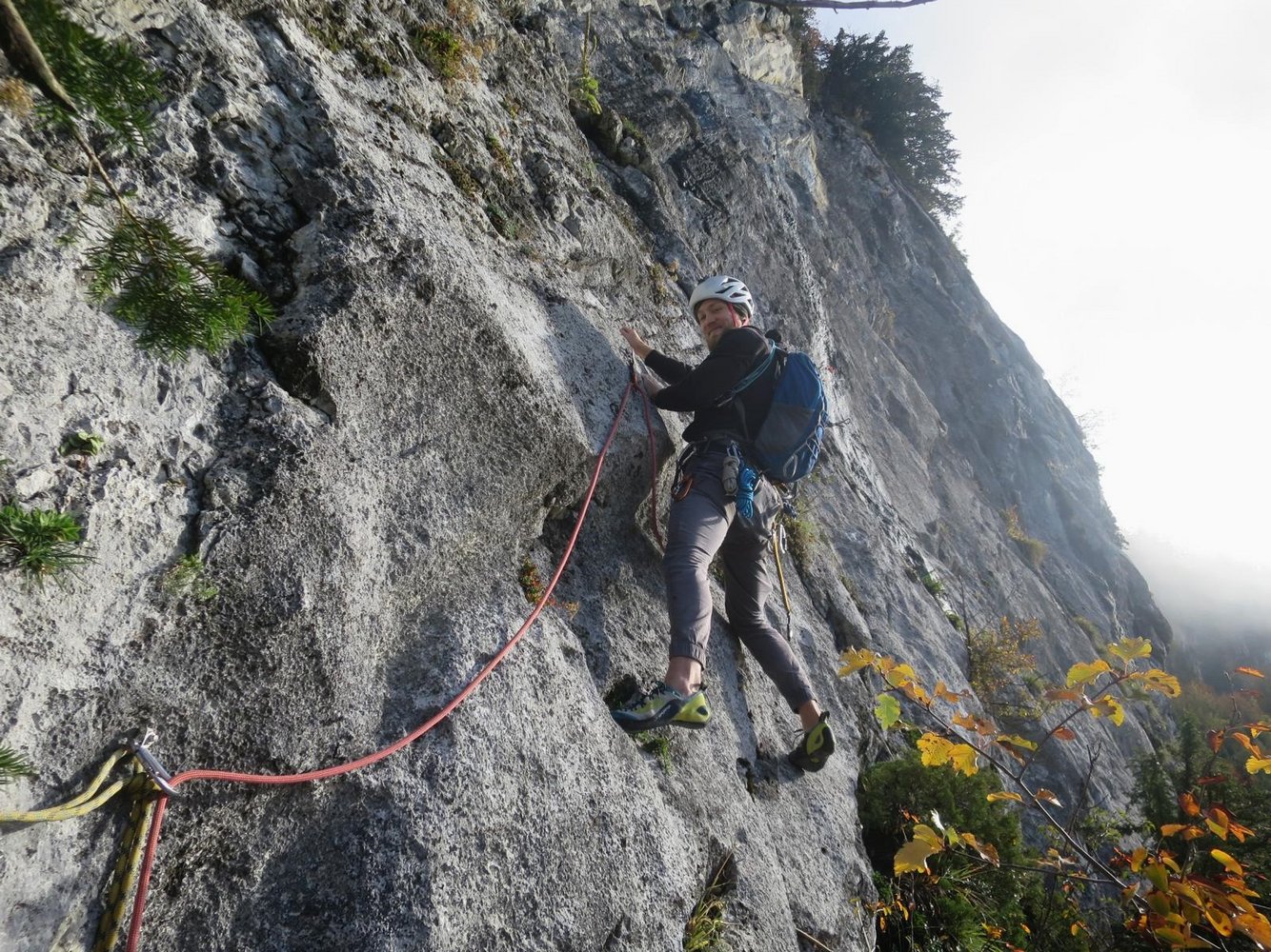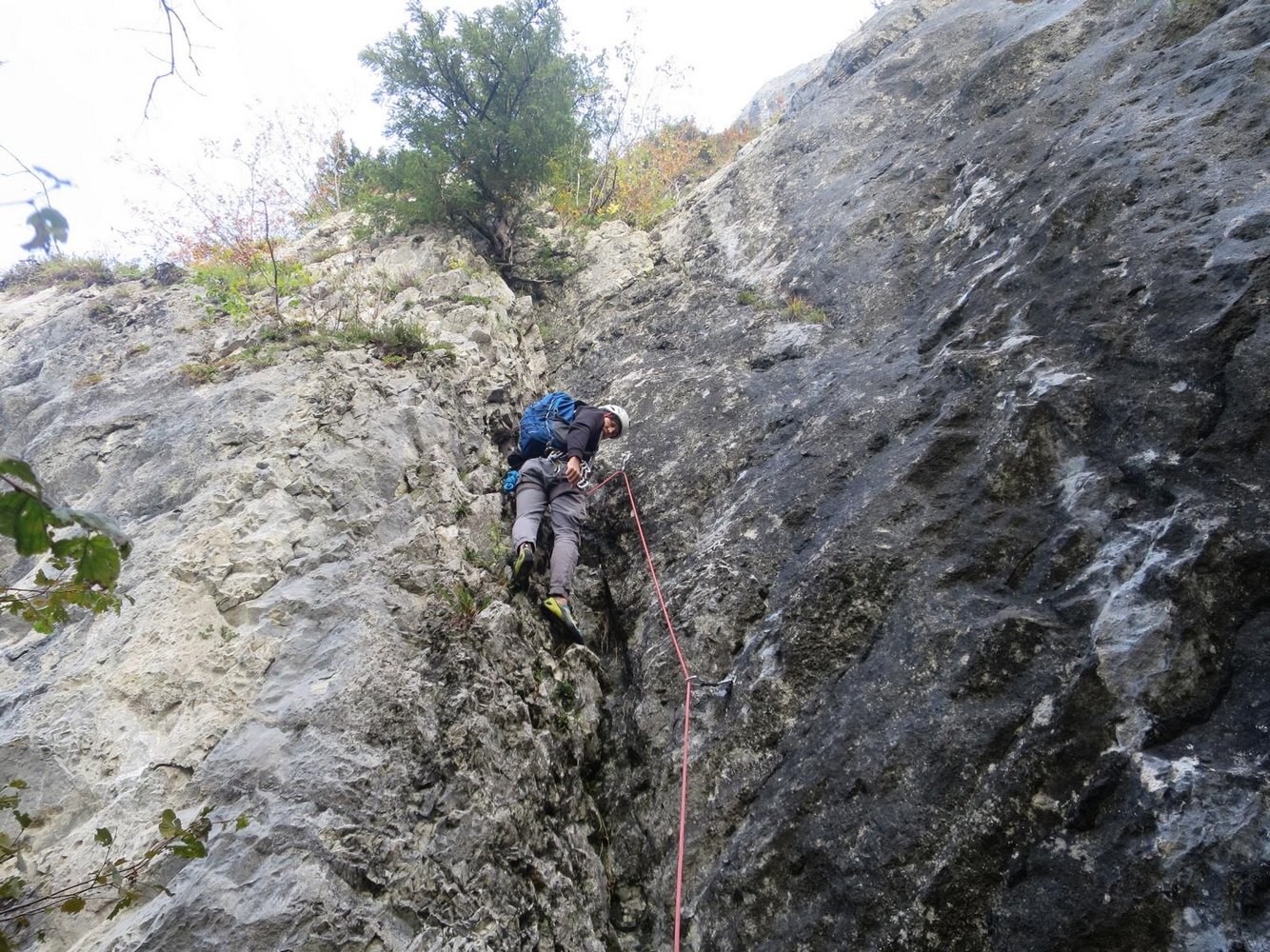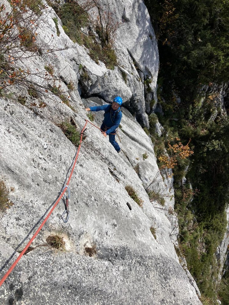 Gut mit Bohrhaken durchgesichert, in der Variante "Zum ohoitn" ist in der 2. SL 2 x (zum 1. Bolt und bei der Linksquerung oben) ein weiterer Abstand.
