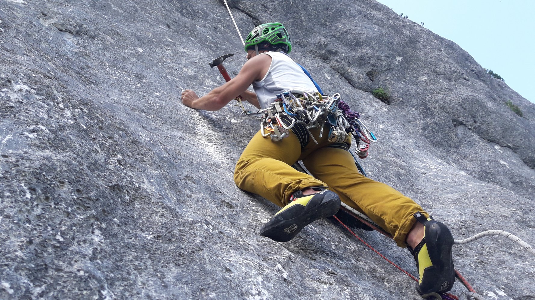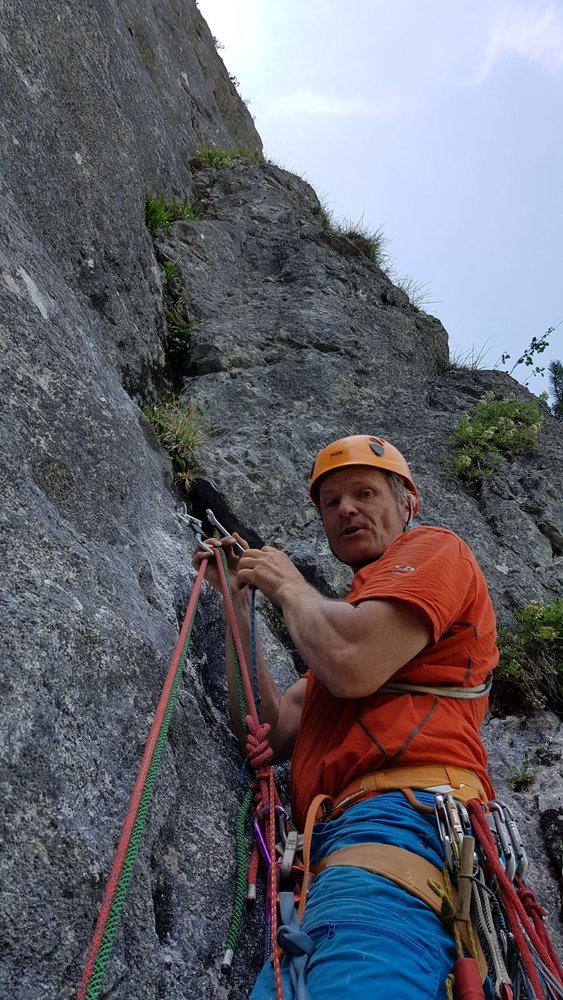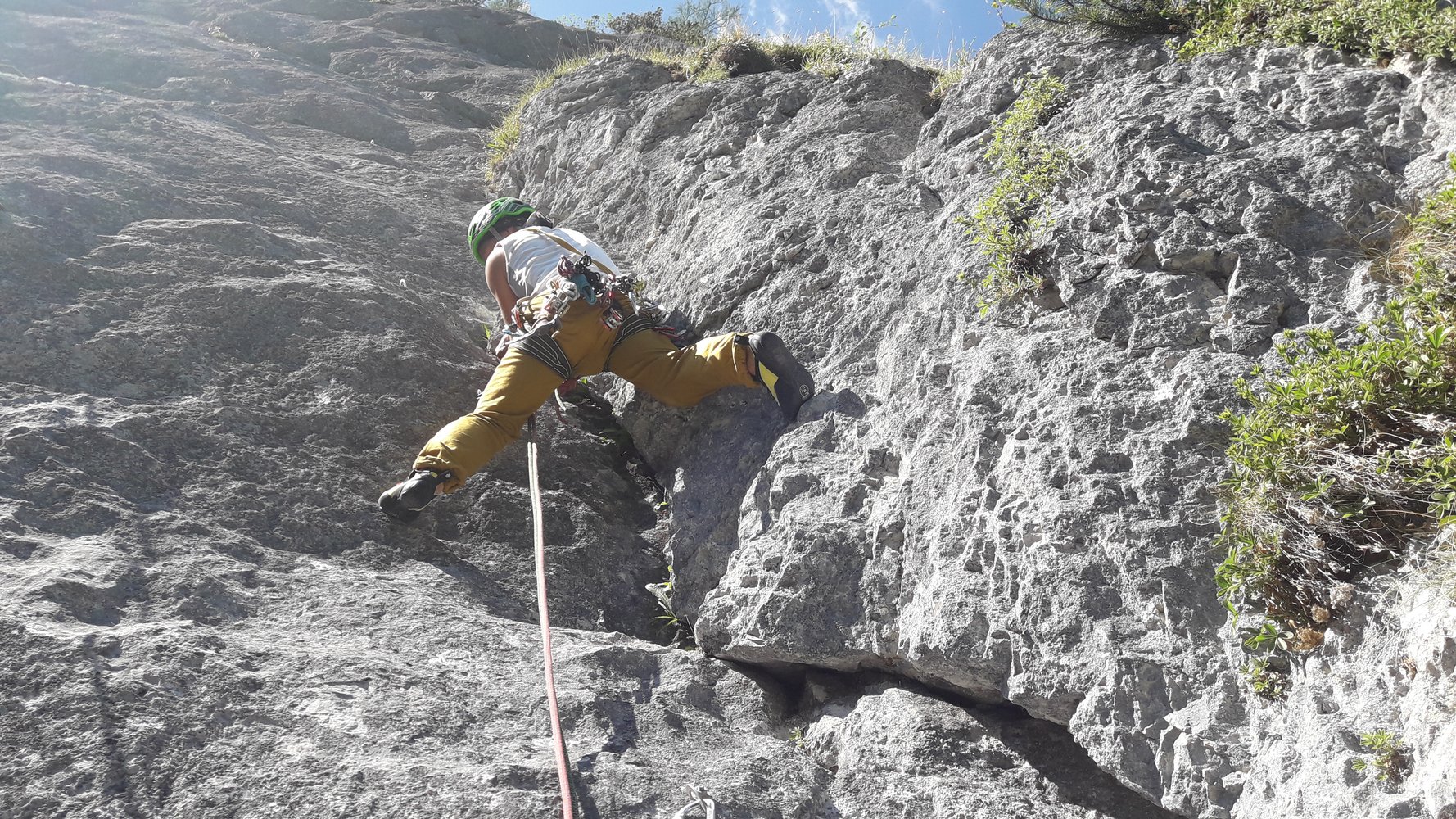 Die Route würde noch nicht völlig frei geklettert und ist derzeit 7 und A0 bzw A1 (Trittschlinge oder Leiter).