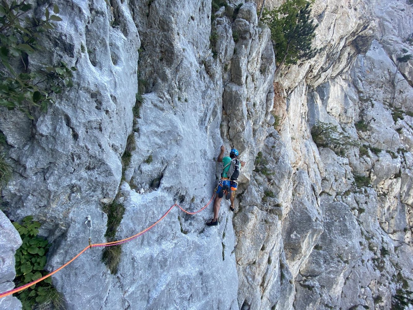 Nach dem Zustieg warten drei sehr steile, alpin angehauchte Seillängen, die zu den imposantesten und wildesten Seillängen im gesamten Großofen zählen.
