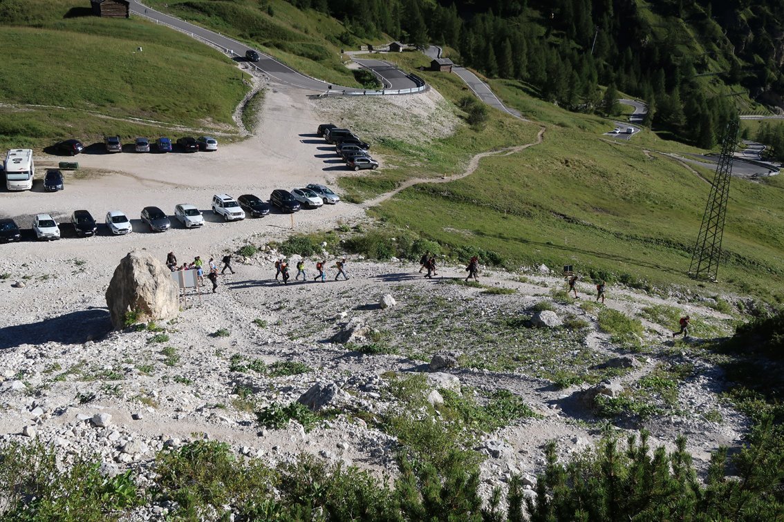 Von Bruneck durch das Gadertal nach Corvara und Richtung Grödnerjoch. Auf der Brennerautobahn A 22 bis zur Ausfahrt Klausen / Grödner Tal, weiter nach Gröden und auf das Grödnerjoch. Von dort zum Parkplatz der "Via ferrata Tridentina" bzw. dem Parkplatz der Pisciadu Hütte.