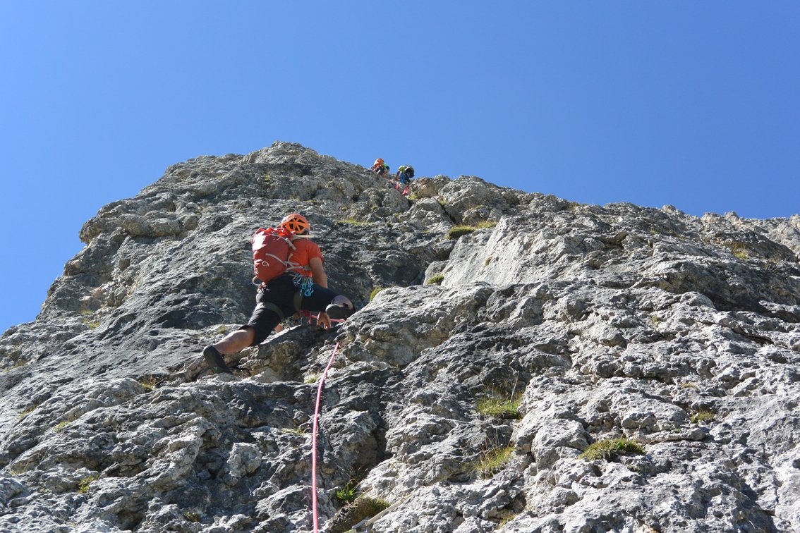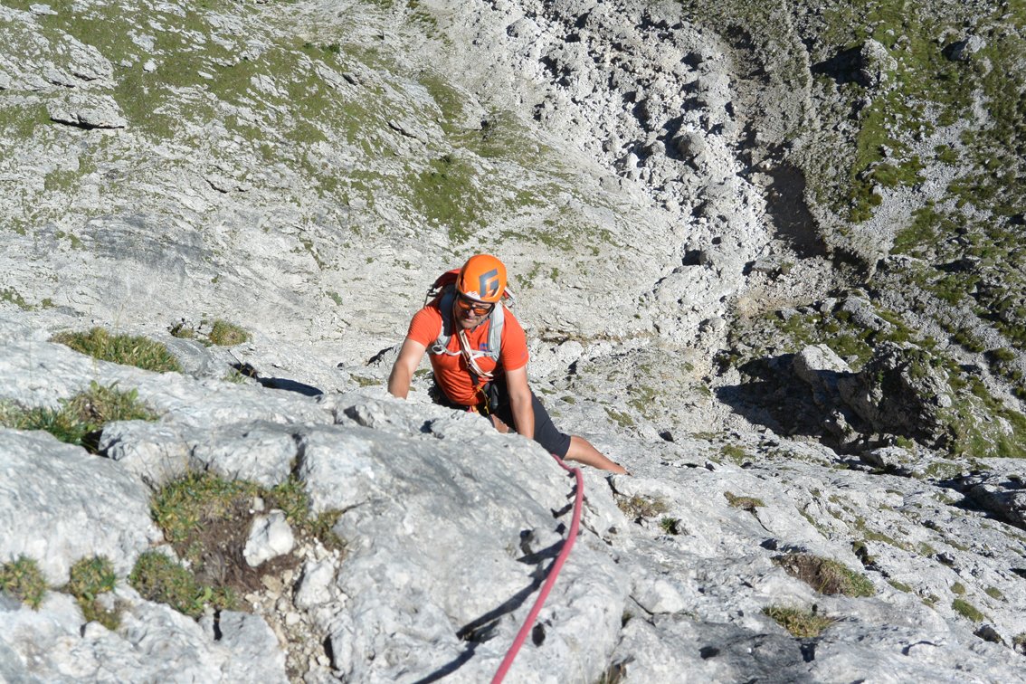 Wirklich schöne, aber teils recht luftige Genusskletterei in plattigem und steilem Fels. Die Routenfindung ist nicht immer einfach, im oberen Teil gibt es div. Möglichkeiten. Vor allem der untere Pfeiler ist wirklich schön, selten findet man so steile, ausgesetzte aber doch recht leichte Kletterei an gutem Fels.