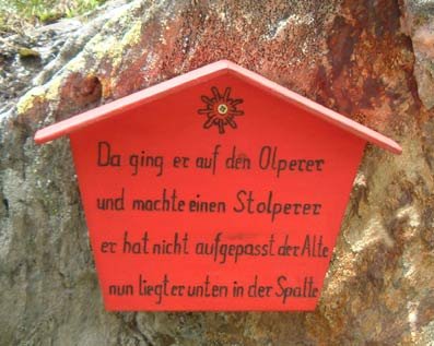 Siehe Topo. Im direkten Aufstieg von der Geraer Hütte, die in wilder Umgebung liegt (mit Blick auf den Fußstein und die Sagwand;) geht es zuerst über Almwiesen und eine Gletschermoräne zum Olperergletscher. Man quert unter einem eindrucksvollen Gletscherbruch in die Wildlahnerscharte und steigt von dieser den markanten Grat zum Gipfel auf.