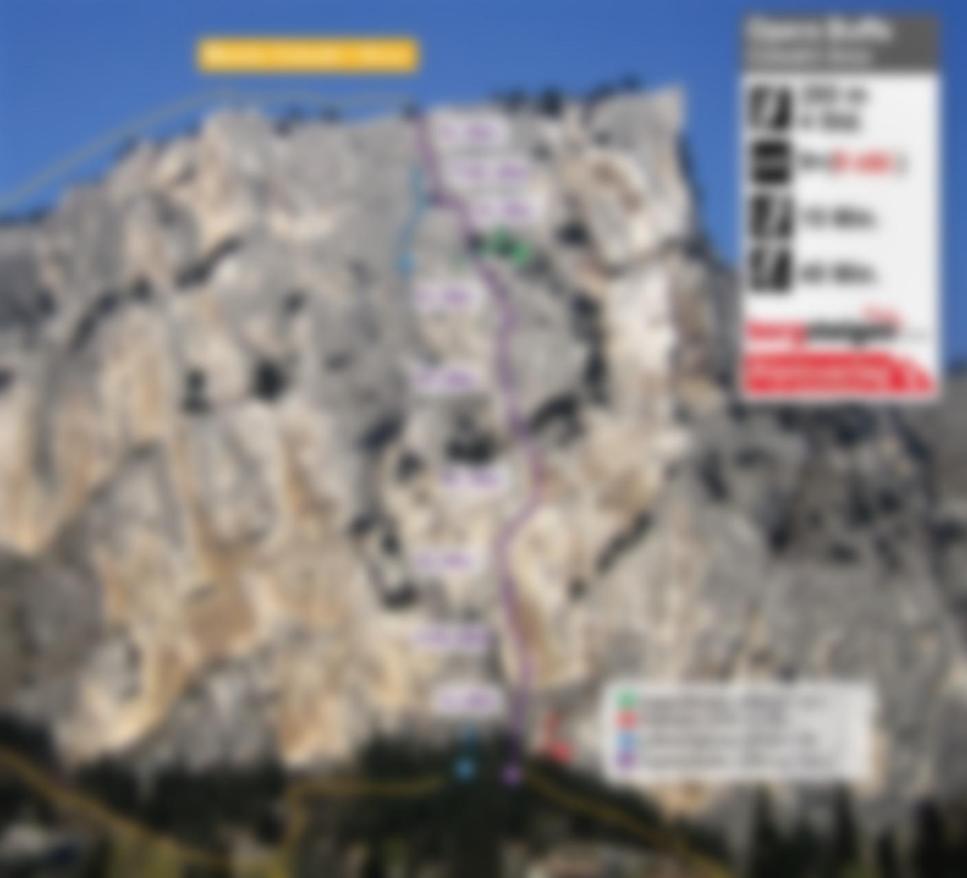 Opera Buffa folgt einer logischen Linie durch die Ostwand des Monte Colodri und wurde 2020 über einen Zeitraum von 4 Tagen von Grund auf neu eingerichtet, bevor sie im April 2021 von den beiden Erstbegehern freigegeben wurde.