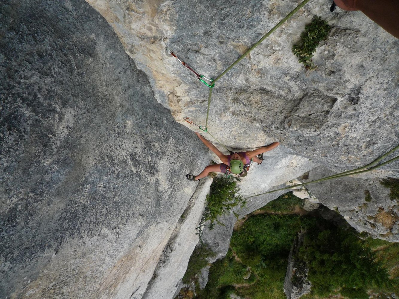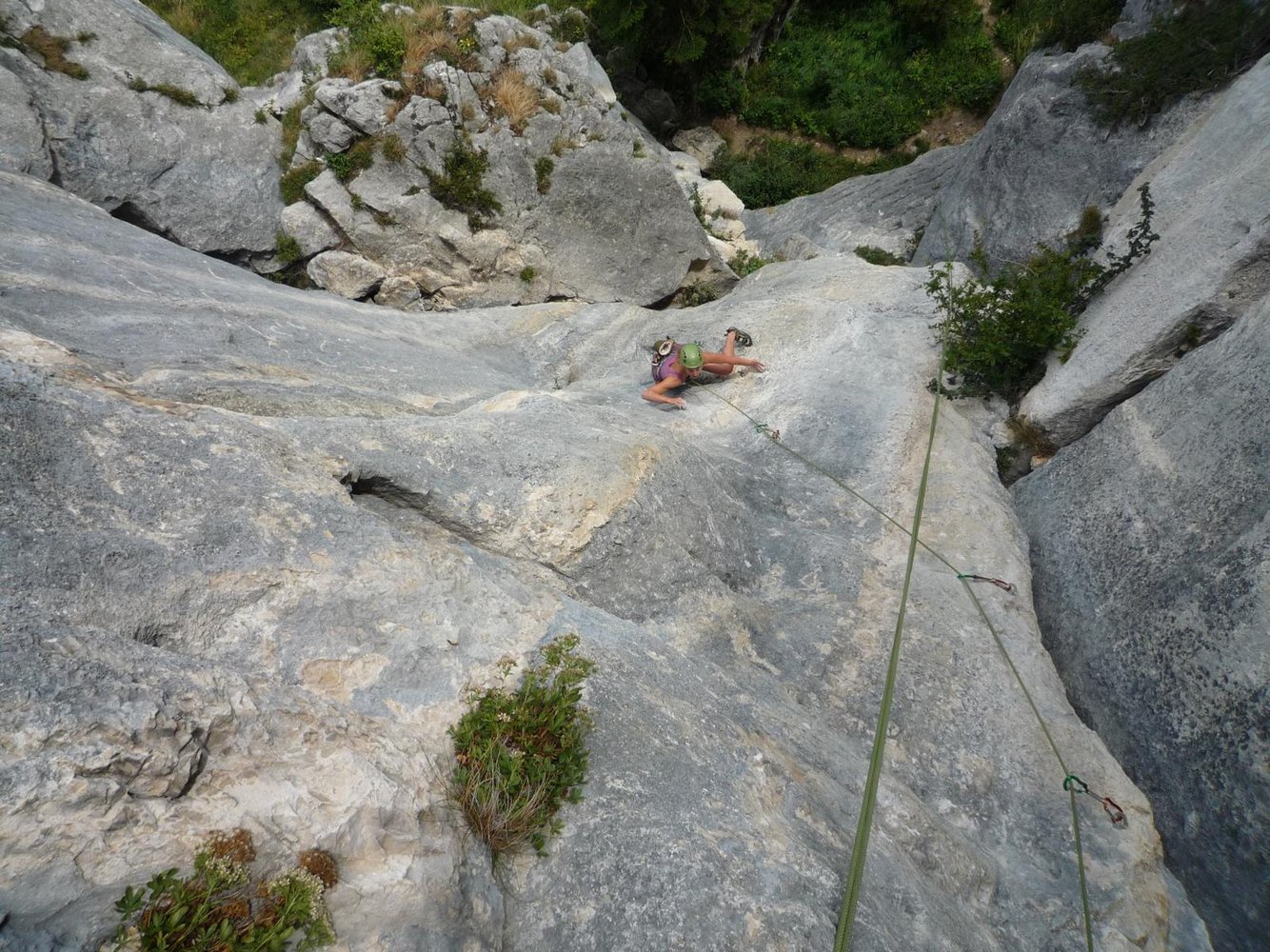 In der 2. Seillänge durch die Querung leider danach gr. Seilzug!