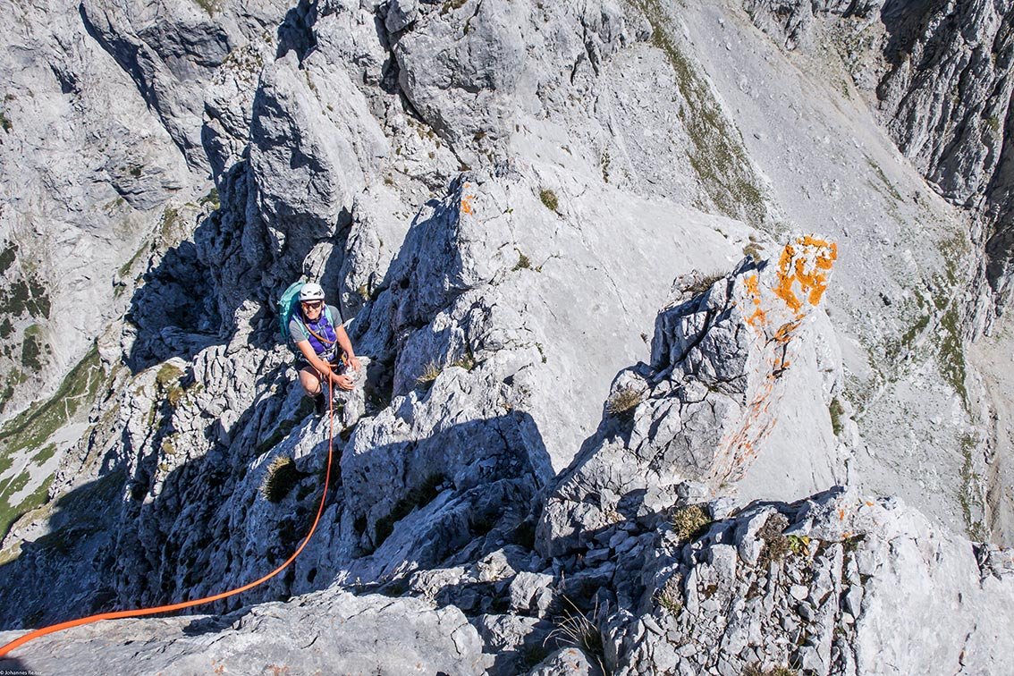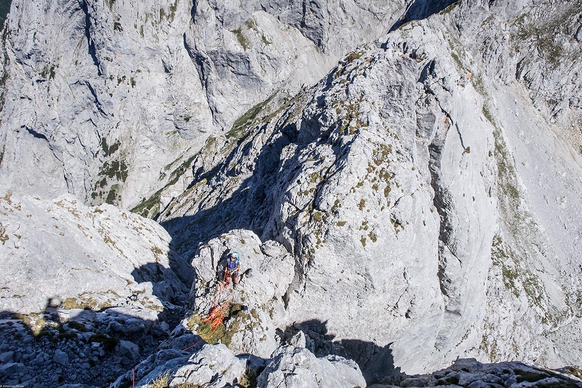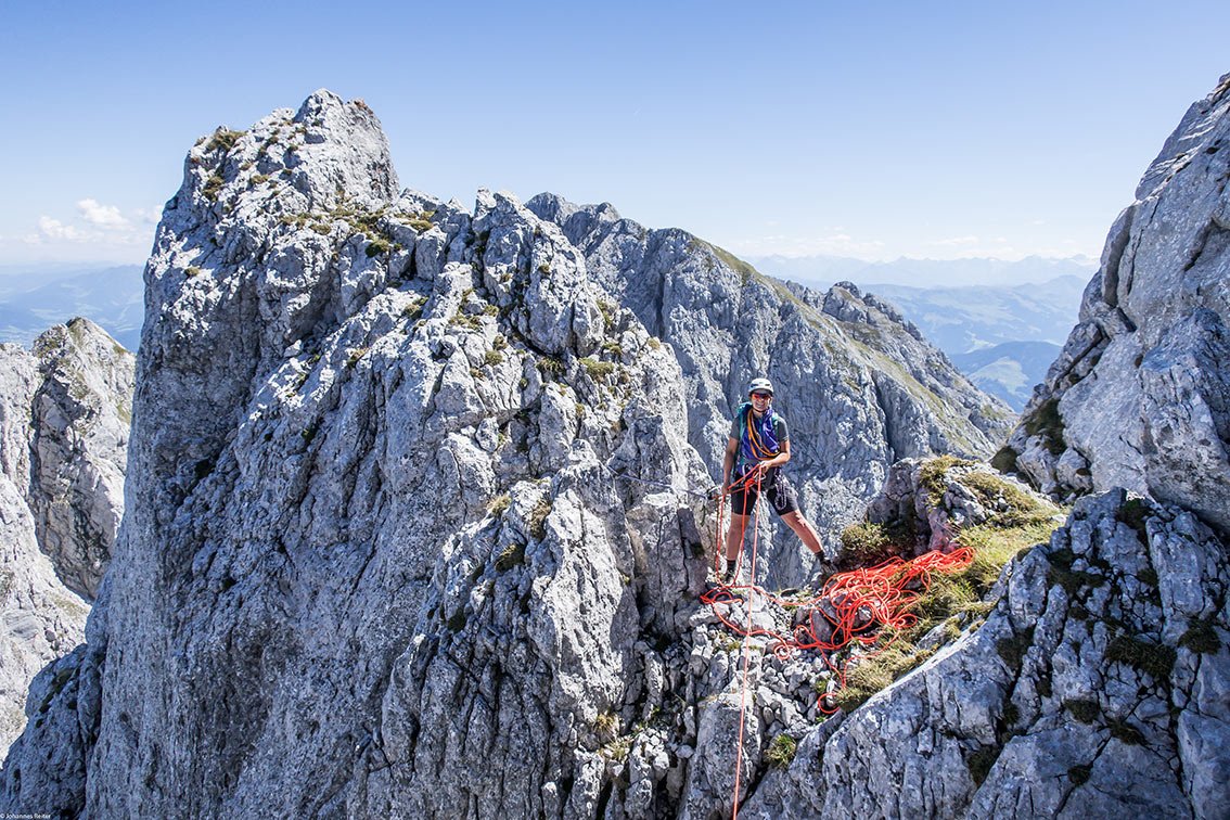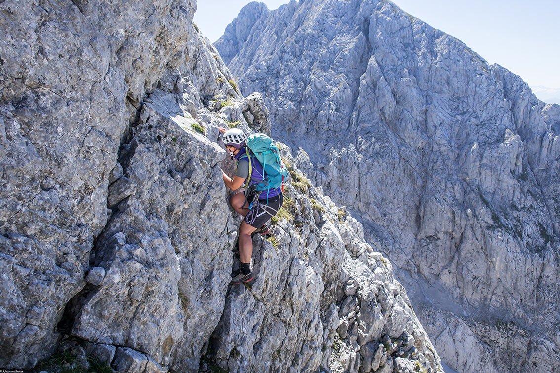 Der Grat ist selbst mit mobilen Sicherungsgeräten abzusichern.