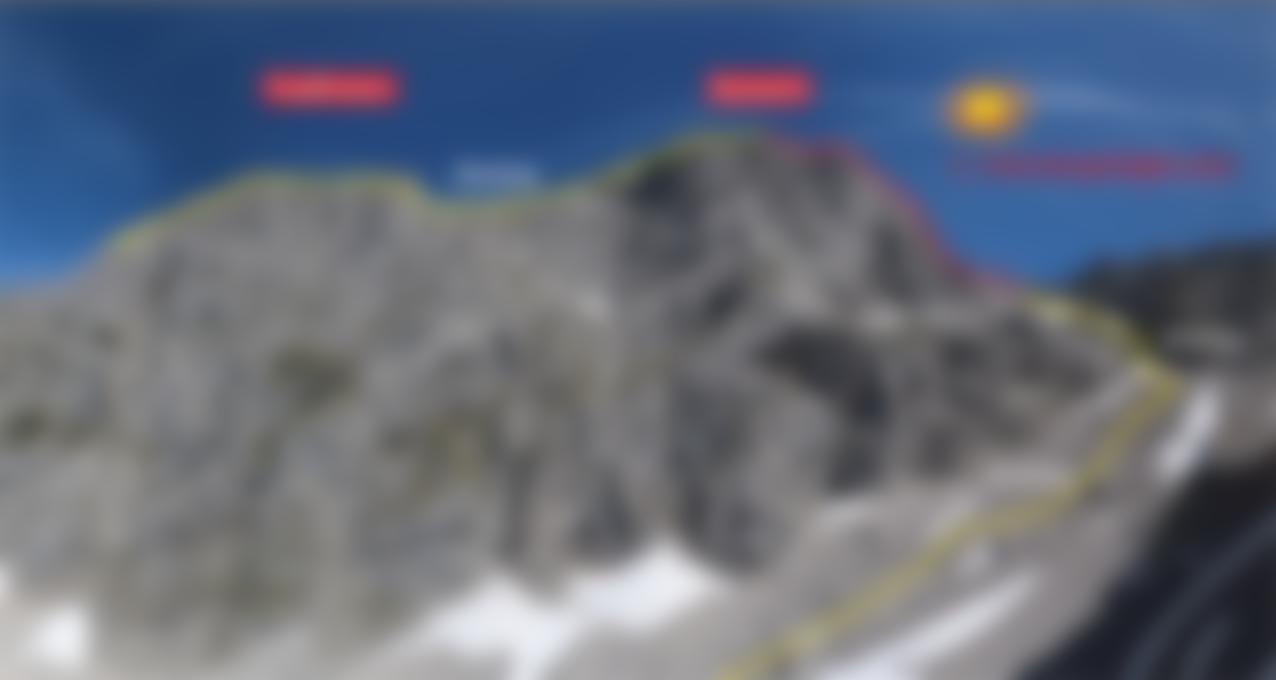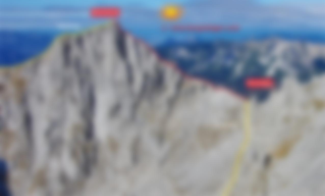 Siehe Topo. Man hält sich meist im Bereich des Grates.