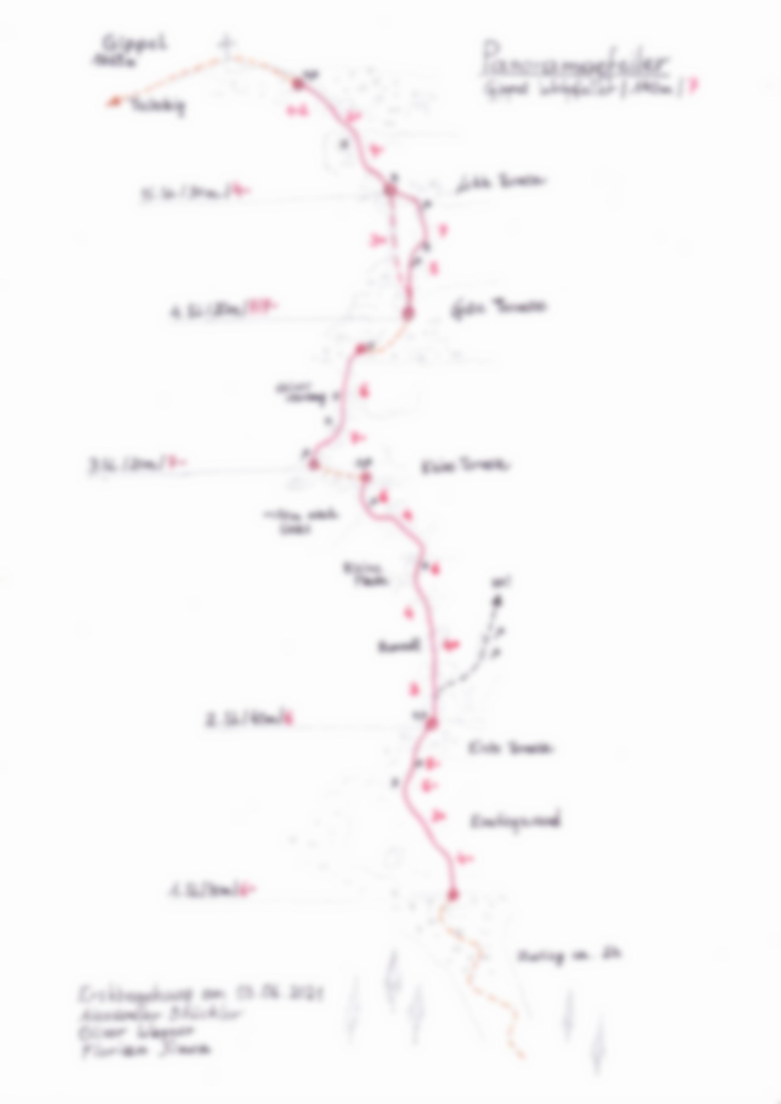Der Panoramapfeiler ist eine anspruchsvolle Alpintour am rechten Pfeiler der Gippel Nordwestwand. Die Linie führt über steile Wandstücke und Terrassen hinauf zum Gipfel. Während man in den Seillängen stets gefordert ist, kann man an den bequemen Standplätzen den weiten Panoramablick genießen. Obwohl die Länge der Kletterei überschaubar ist, handelt es sich um eine ganztägige, hochalpine Unternehmung, in sehr einsamer Umgebung. Aspiranten sollten ein solides Kletterkönnen und einen gewissen Mut mitbringen!