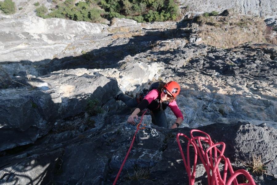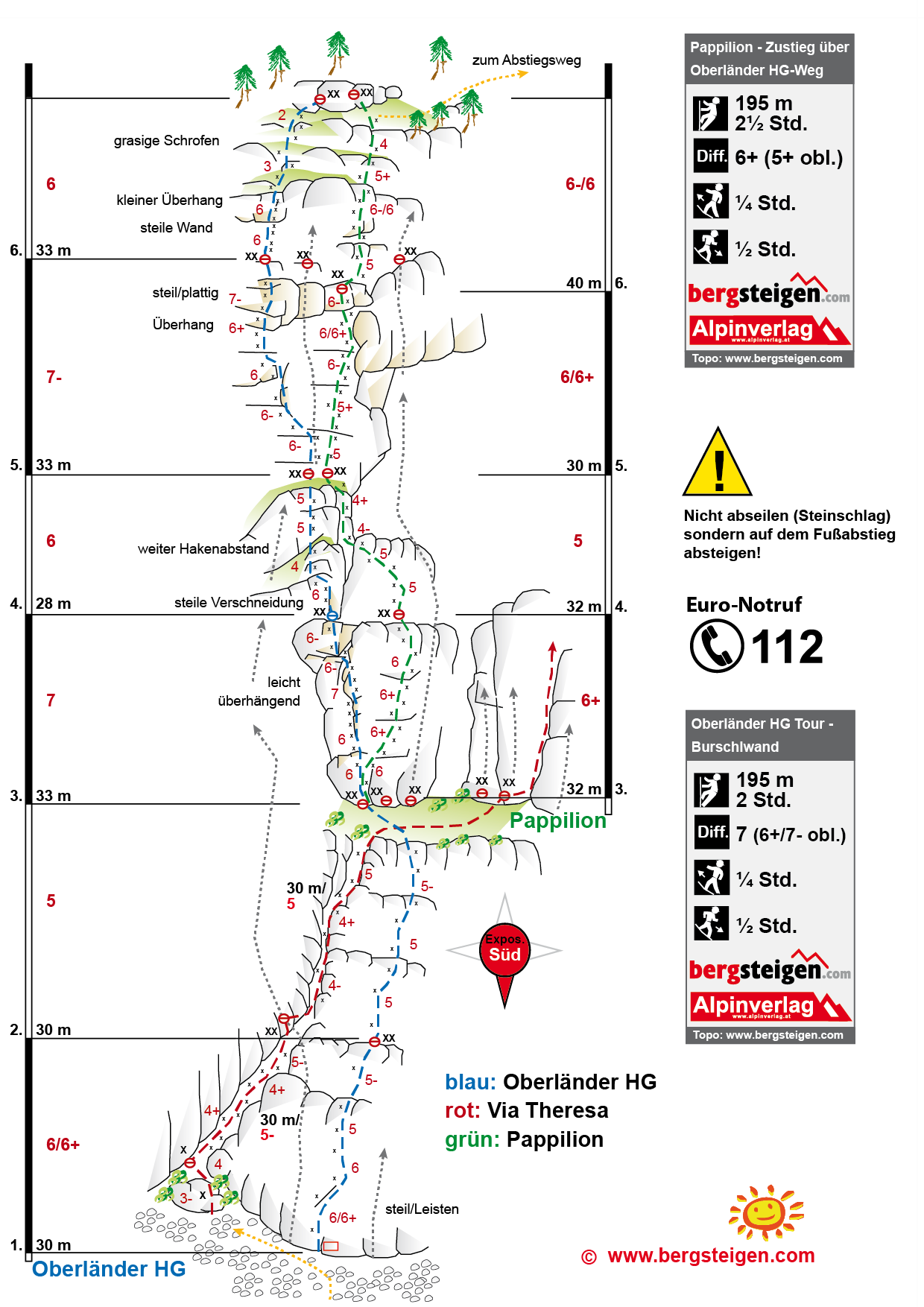 Die Pappilion ist eine tolle, leichte Ausdauerroute im zentralen Wandteil der Burschlwand. Mit dem Einstieg über die ersten beiden Seillängen des Oberländer HG-Weges eine beliebte Routenkombination (wer will, der kann auch über die eher unlohnenden ersten Seillängen der Via Theresa zusteigen).