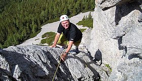 Ausreichend abgesicherte Wandkletterei in schönem Fels