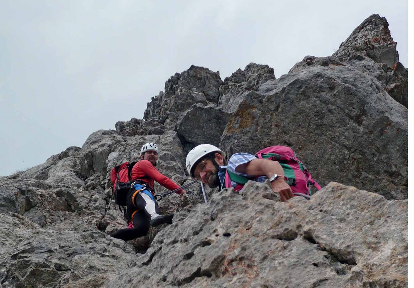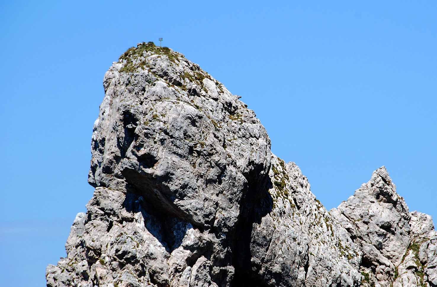 4. Die Gipfelwand leicht rechts haltend aufwärts und ausgesetzt bis zum höchsten Punkt (15m; 3)