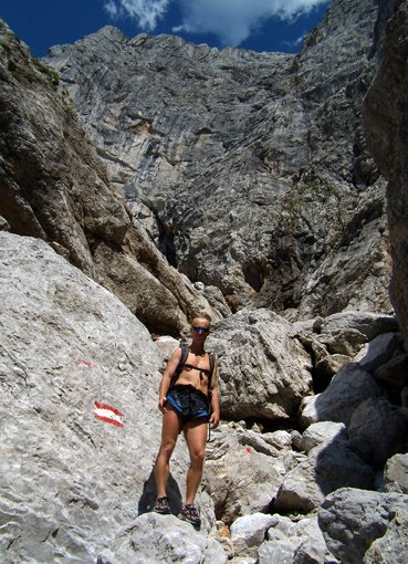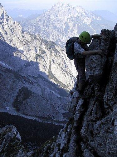 Extrem beliebter und spektakulärster Anstieg im Gesäuse, wobei der Begriff "Pfad" im Sinne des Wortes nicht stimmt; der Peternpfad ist eine Kletterroute im 2. Schwierigkeitsgrad, an exponierten Stellen mit Haken versehen aber nicht klettersteigmäßig versichert! In Verbindung mit dem Roßkuppengrat auf das Hochtor ist er eine der längsten und lohnendsten Felsanstiege der nördlich Kalkalpen. Der Anstieg ist durchgehend rot markiert und wir auch oft im Abstieg begangen.