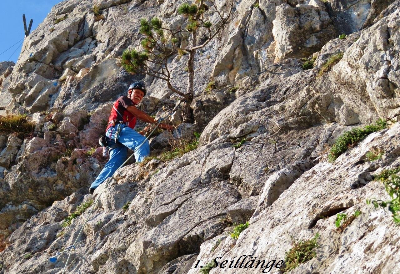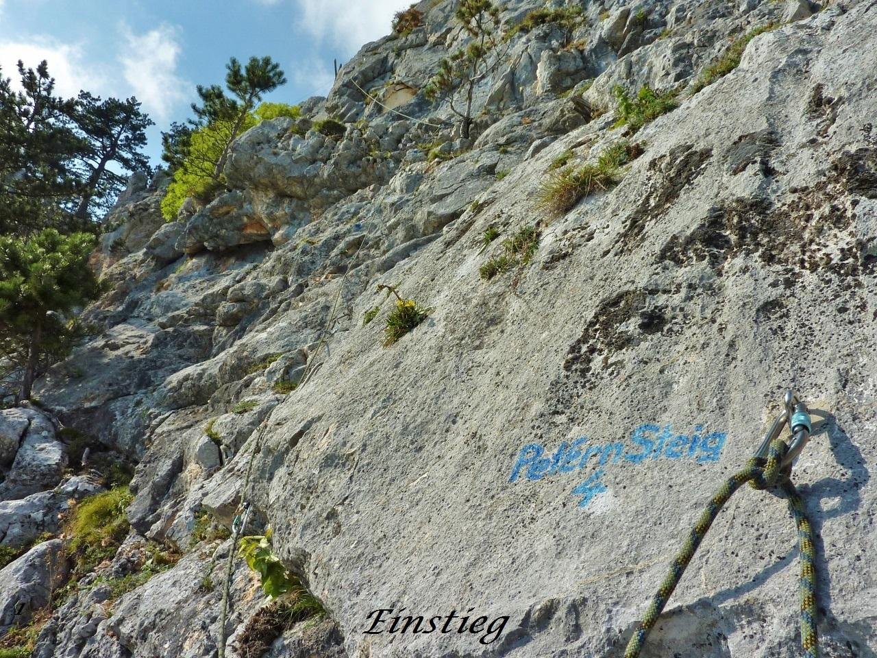 Vom Parkplatz zum "Seiser Toni" auf der bis zum Ende der Asphaltstraße. Hier führt links ein rot markierter Steig zur einer Forststraße hinauf. Auf der Forststraße 100 m nach rechts und wieder links über einen rot markierten Steig zum Wandfusssteig aufsteigen und in wenigen Schritten rechts hinauf zum Einstieg des Eichertsteiges und den Eichert steig bis unter die HAmmerlwand klettern.