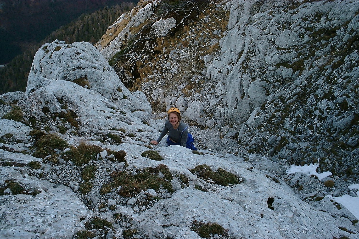 Achtung: Die Klettertour wurde bis zur 150 m hohen Schlusswand mit dem Eisenerzer Klettersteig überbaut und ist nicht mehr begehbar. Die Fotos und die Beschreibung haben daher bereits historischen Charakter. Schade um eine der besten Hochschwab 3er!