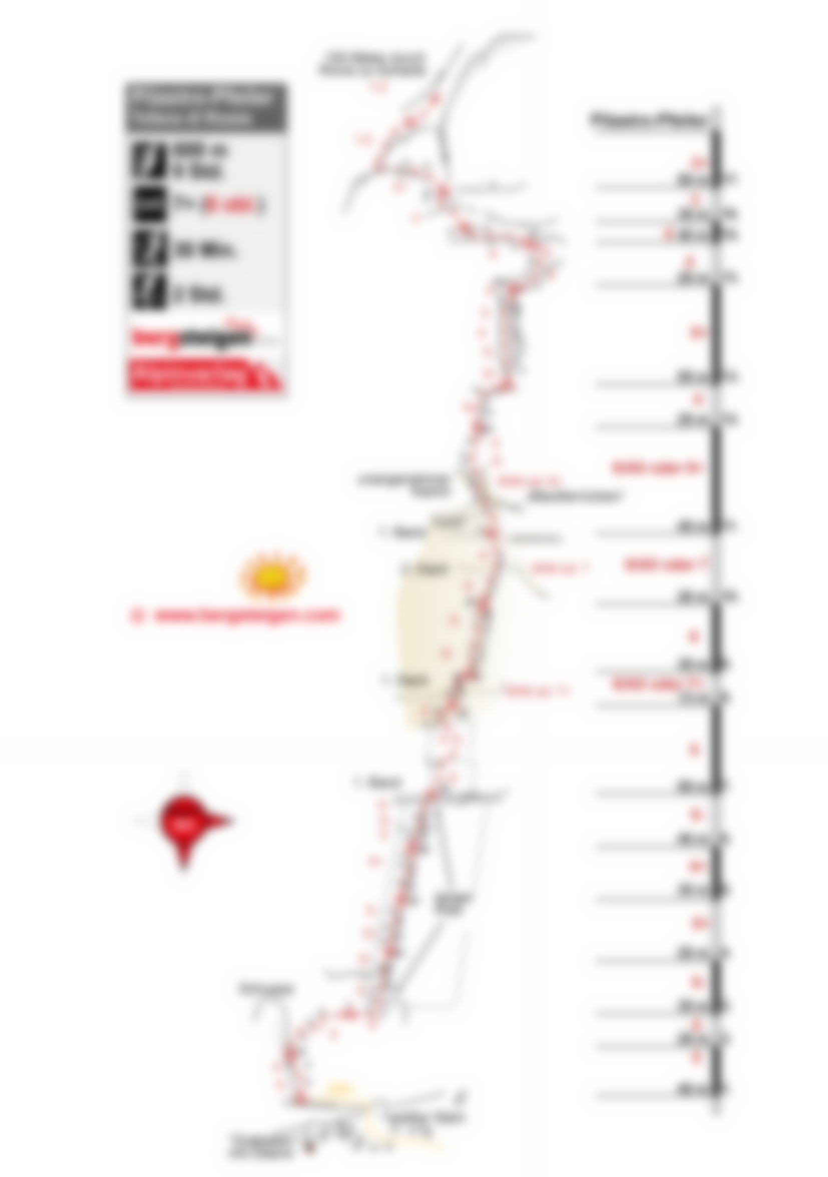 Vom Ausstieg den Steinmännern in nördliche Richtung leicht fallend folgen. Bei Abzweigung NICHT nach rechts runter (alter Weg), sondern LINKS rund 100 HM aufwärts (rote Markierungspunkte) in einen Sattel und von dort steil runter nach Norden zum Normalweg der Tofana. Weiter über das Rifugio Giussani (2.580 m) und dem schönen Wanderweg zurück zum Ausgangspunkt.