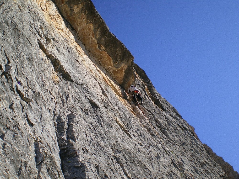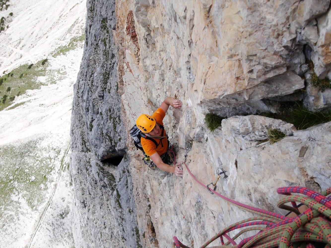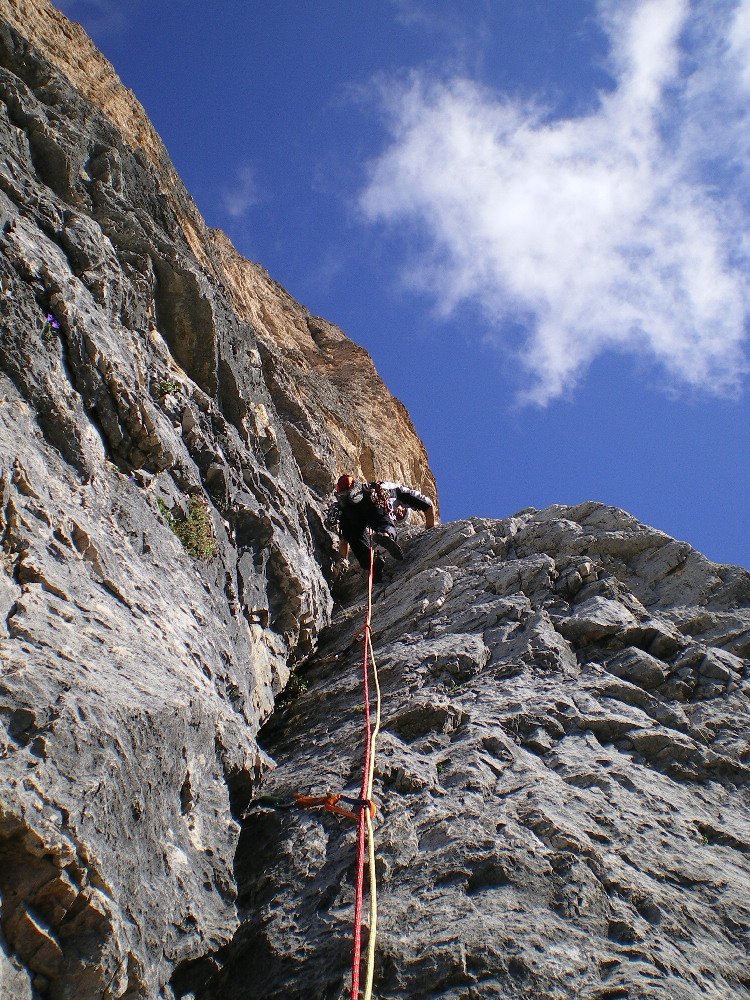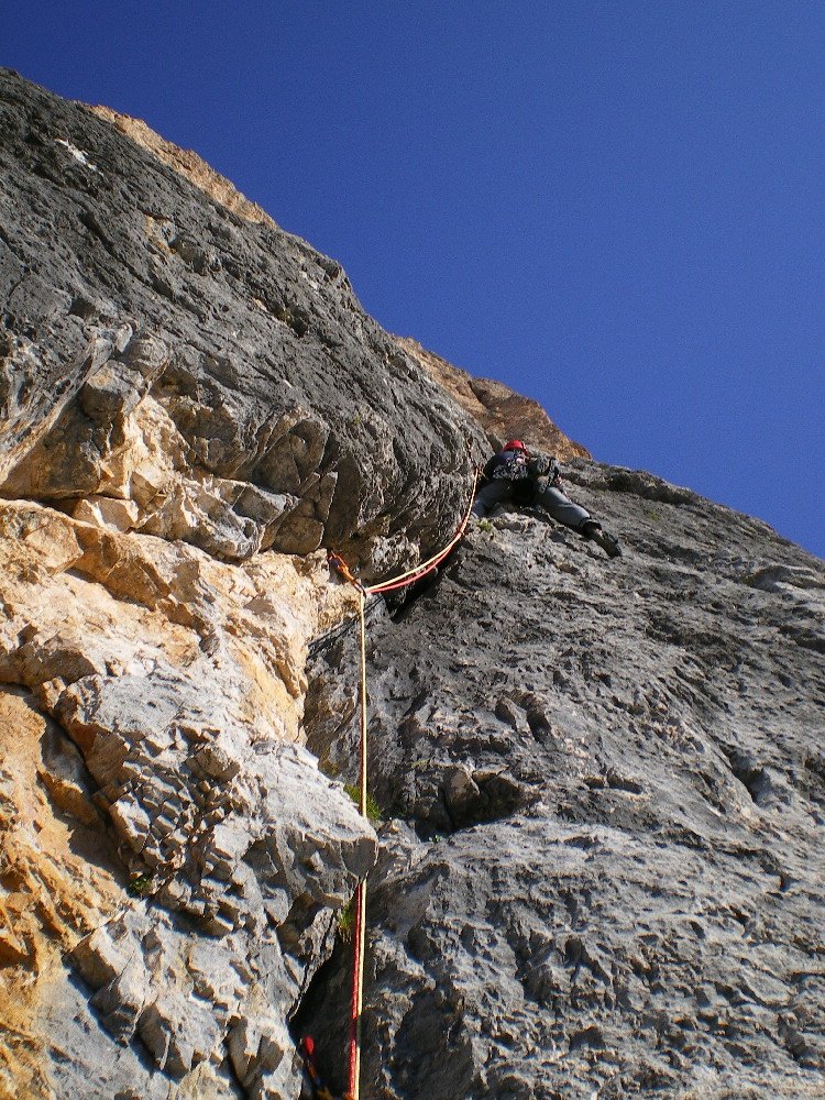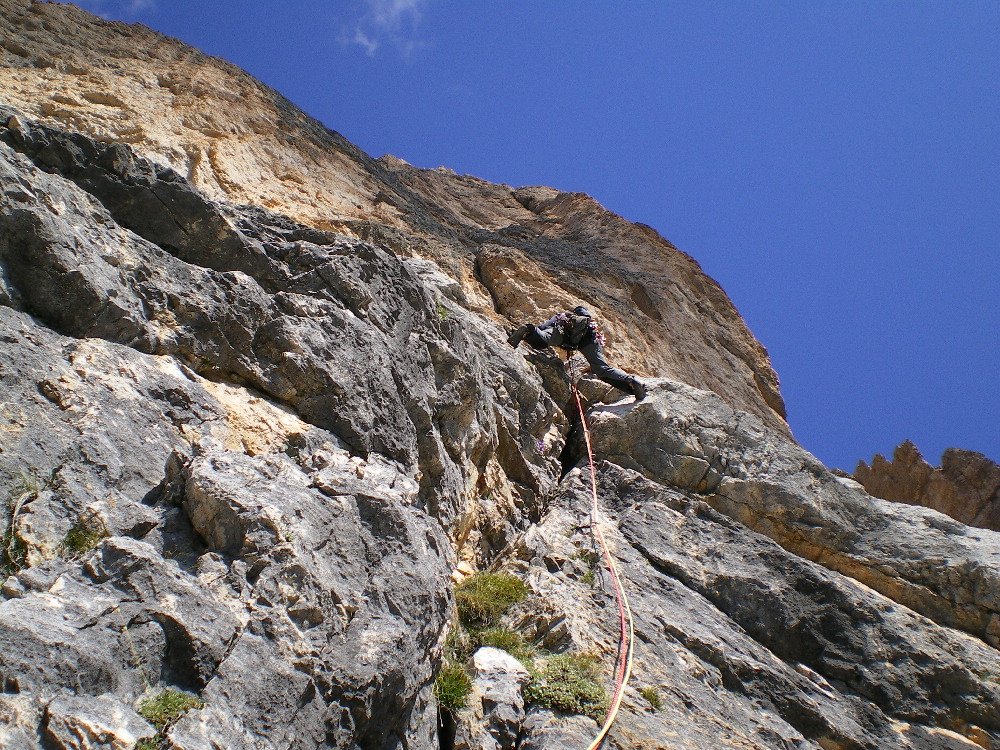 Der Extremklassiker an der Tofana bzw. in den Dolomiten überhaupt. Die Tour hat sehr eindrucksvolle Passagen und bietet fast durchgehend tolle Kletterei an bestem Fels. Die Kletterei ist teilweise sehr athletisch und über weite Strecken sehr luftig. Nach dem zweiten Band wartet ein etwas unangenehmer Kamin - der sog. "Maultierrücken" - auf die Begeher.