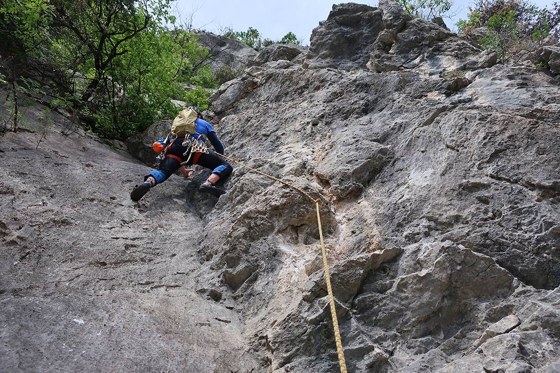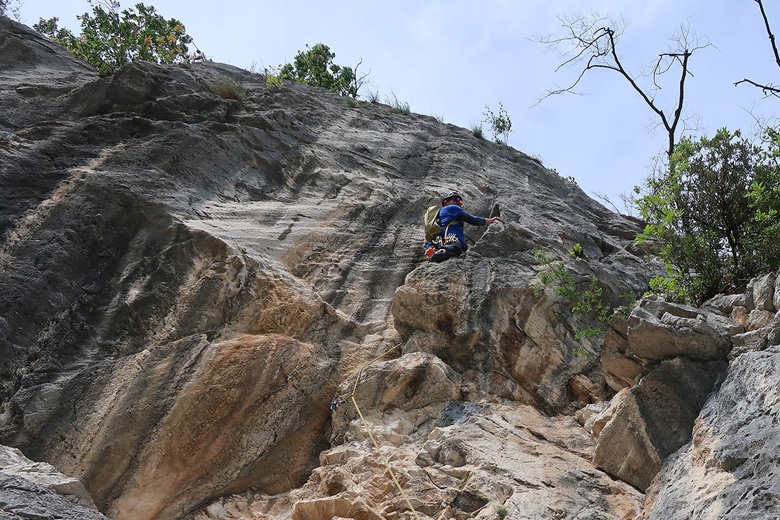 Die Tour ist gut mit Bohrhaken, Normalhaken und Sanduhren abgesichert.