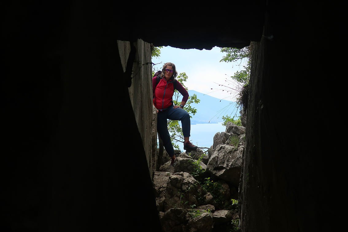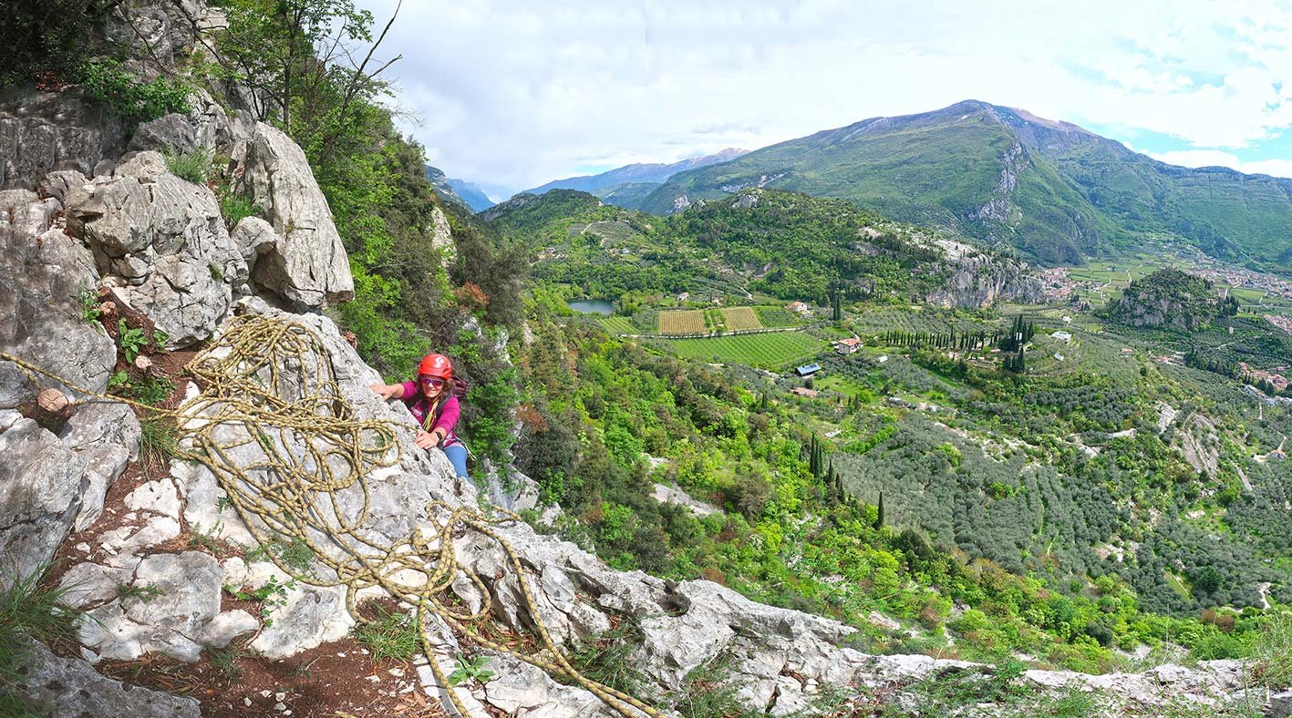 Von Rovereto oder Trento nach Arco. Im Ort hinter dem markanten Burgfelsen ins Lagheltal, nach den ersten engen Kehren kommt ein Parkplatz in der Mitte - genau dort wo sich die Straßen per Einbahnregelung teilen. Öffis: Mit dem Bus nach Arco und weiter zu Fuß.