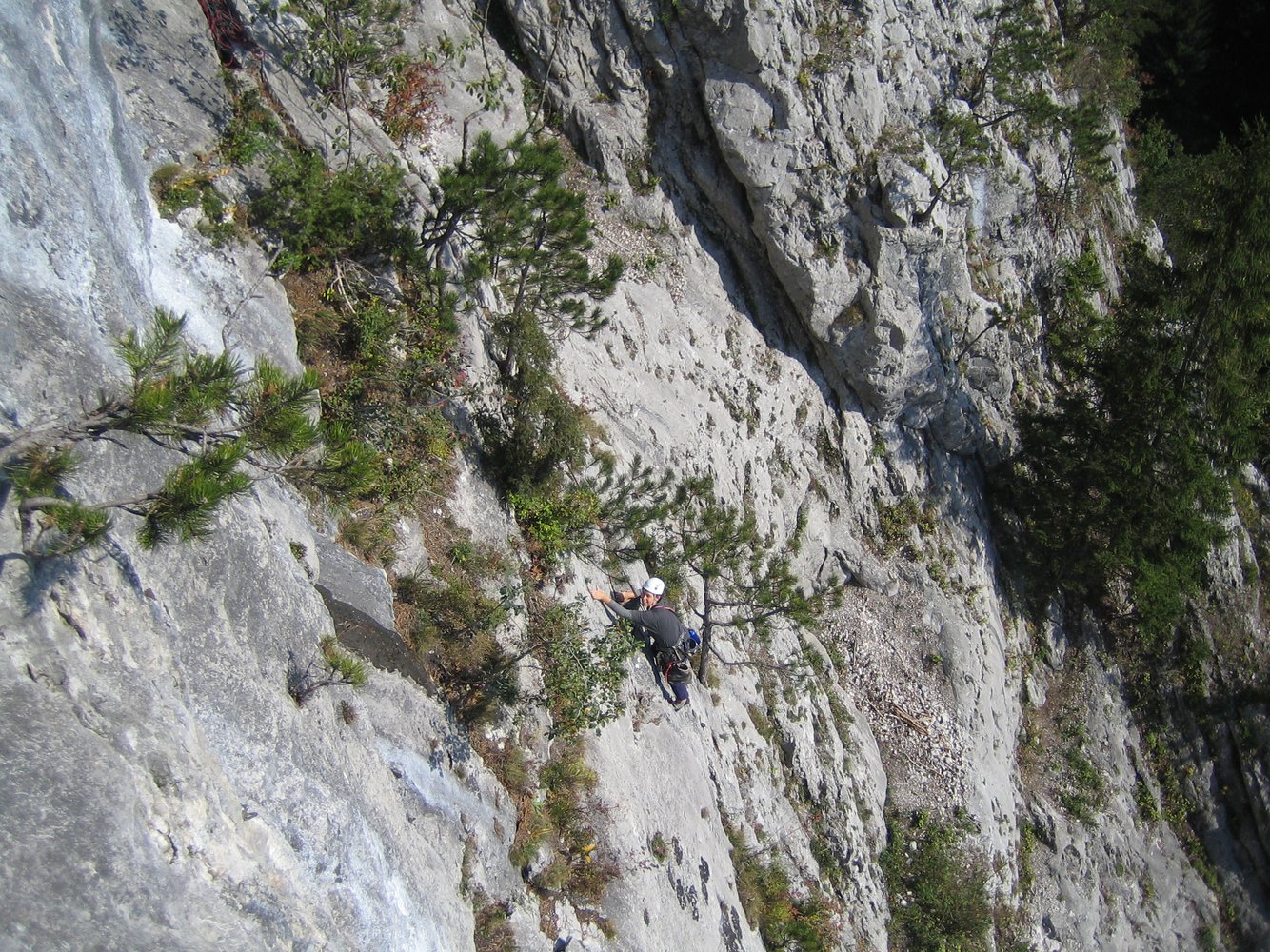Sehr beliebte Route in schönem Fels (alle nötigen Haken und SU- Schlingen vorhanden)