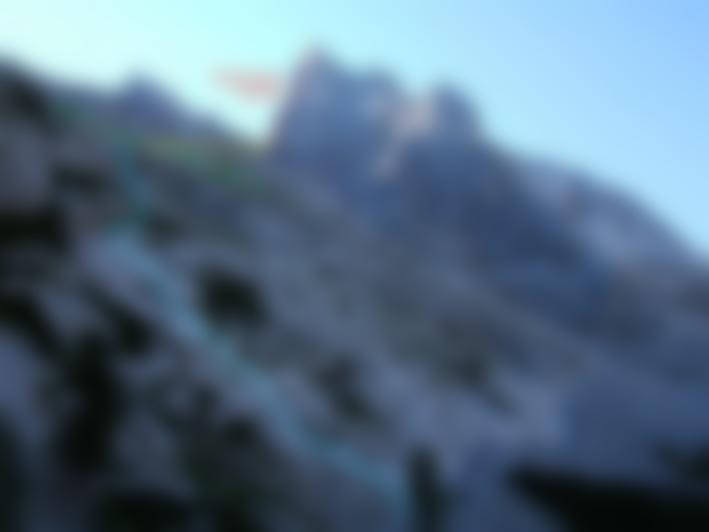 Über den markierten Steinberg-Normalweg entweder zum Gipfel bzw. in 1/2h zurück ins Kar zur Hütte (tlw. I und etwas ausgesetzt). Oder weiter aufwärts über Geröll zum Einstieg der Schärtenspitze Nordostwand (empfehlenswert!).