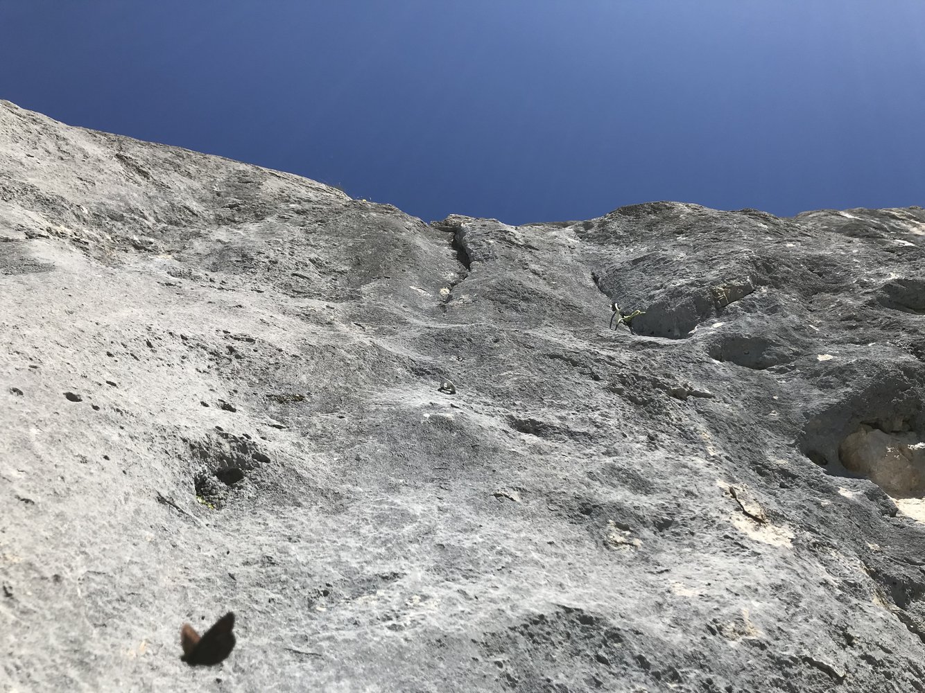 Trotz zahlreicher Bohrhaken gibt es viele obligate Passagen und größere Abstände in leichteren Abschnitten.