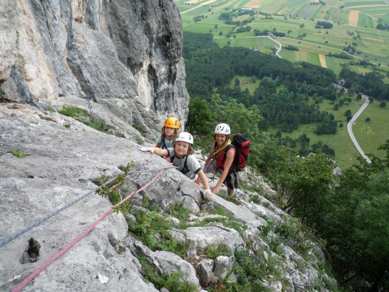 Wird oft ohne Seil gemacht. Einfachseil, 6 Expr. Schlingen, Bandschlingen, Sanduhrschlingen.
