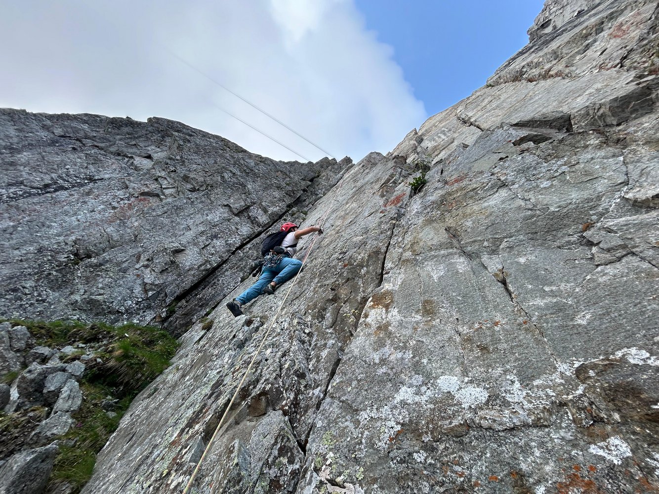 Die Route ist nur teilweise mit Bolts gesichert, den Rest muss man selber in Rissen absichern.