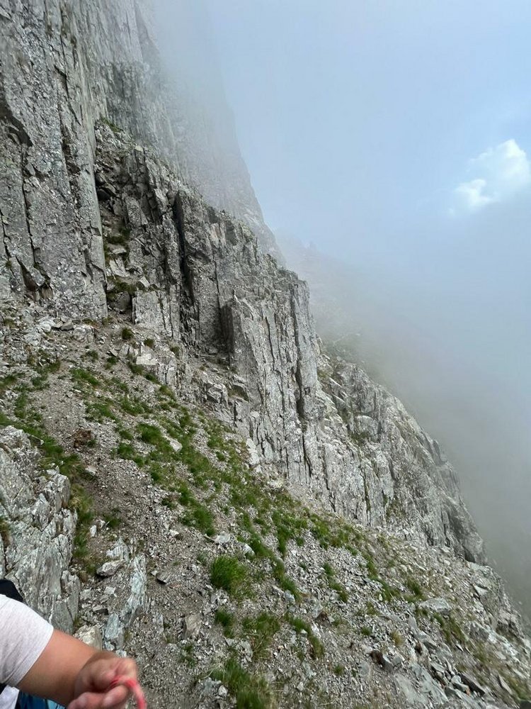 Nach der letzten schweren Länge über Schrofen und Wiese rauf zum Zaun (am Geländer oben noch einmal Stand machen) und in wenigen Minuten zurück zur Seilbahn.