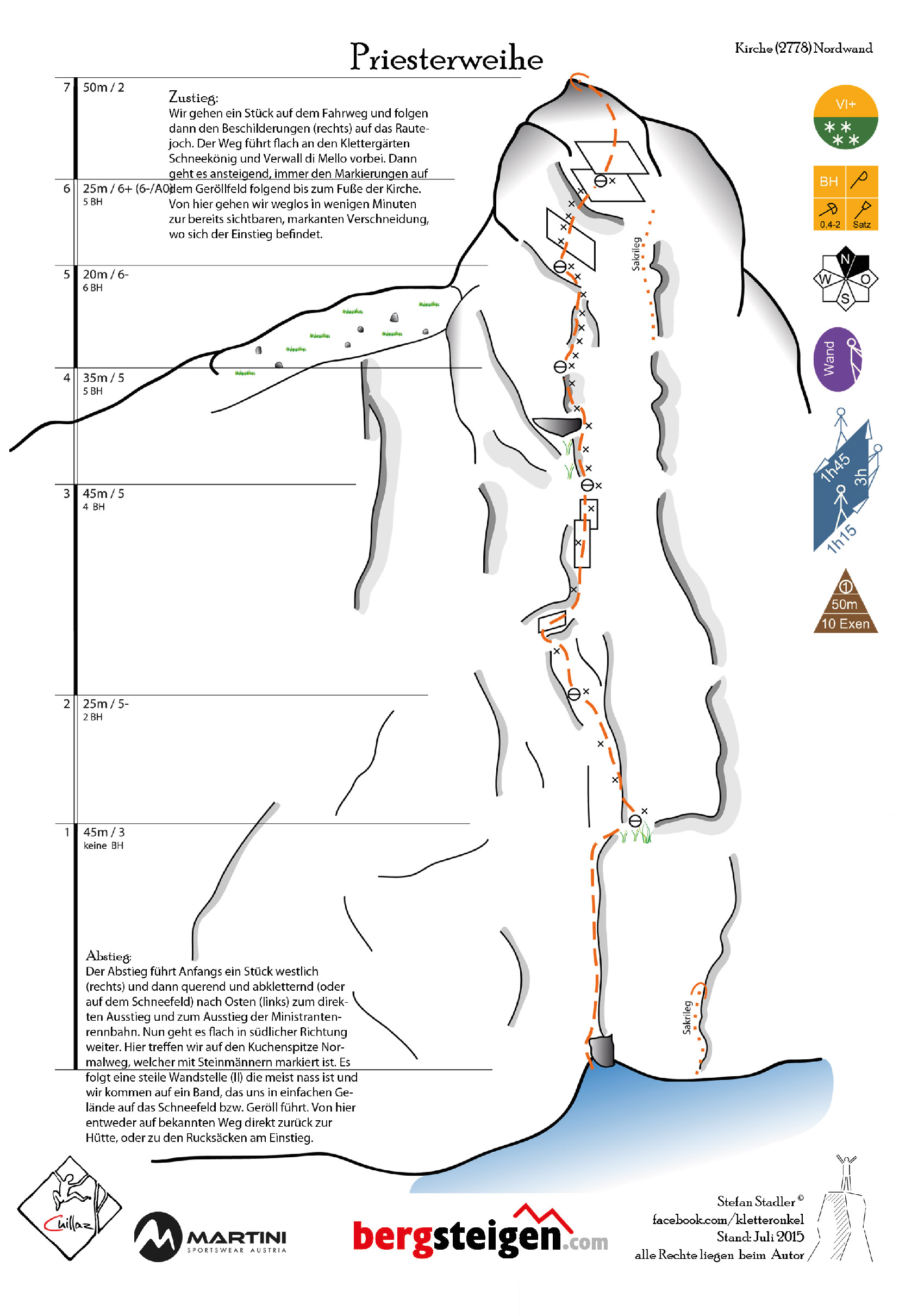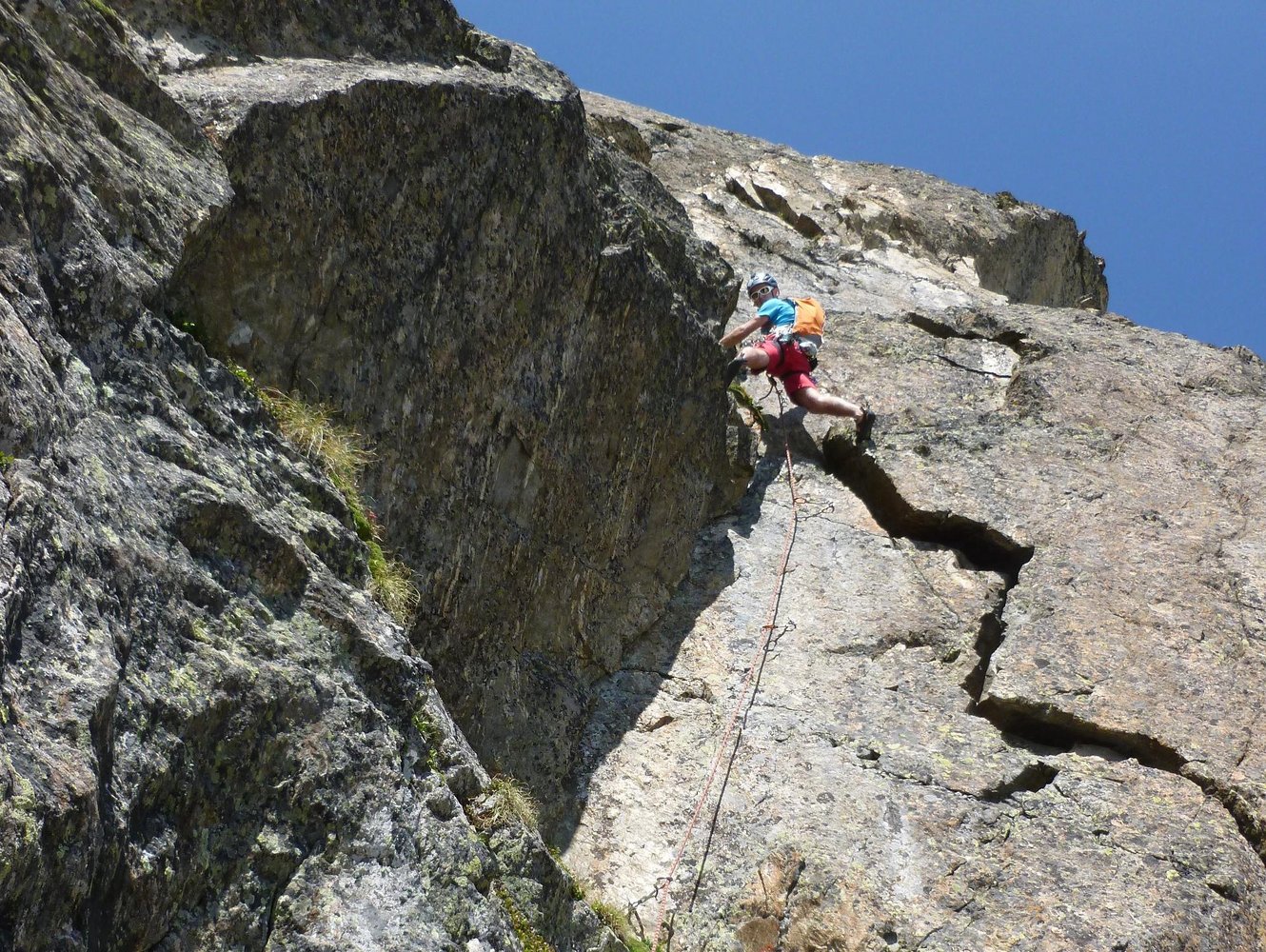 Griffiger Gneis und eine Schattige Nordwand machen die Priesterweihe mit ihrer markanten Verschneidung gemeinsam mit dem Ausstieg über die Messweinorgie mit ihrer schönen Piazschuppe zu einem Lohnenden Hochsommerziel.