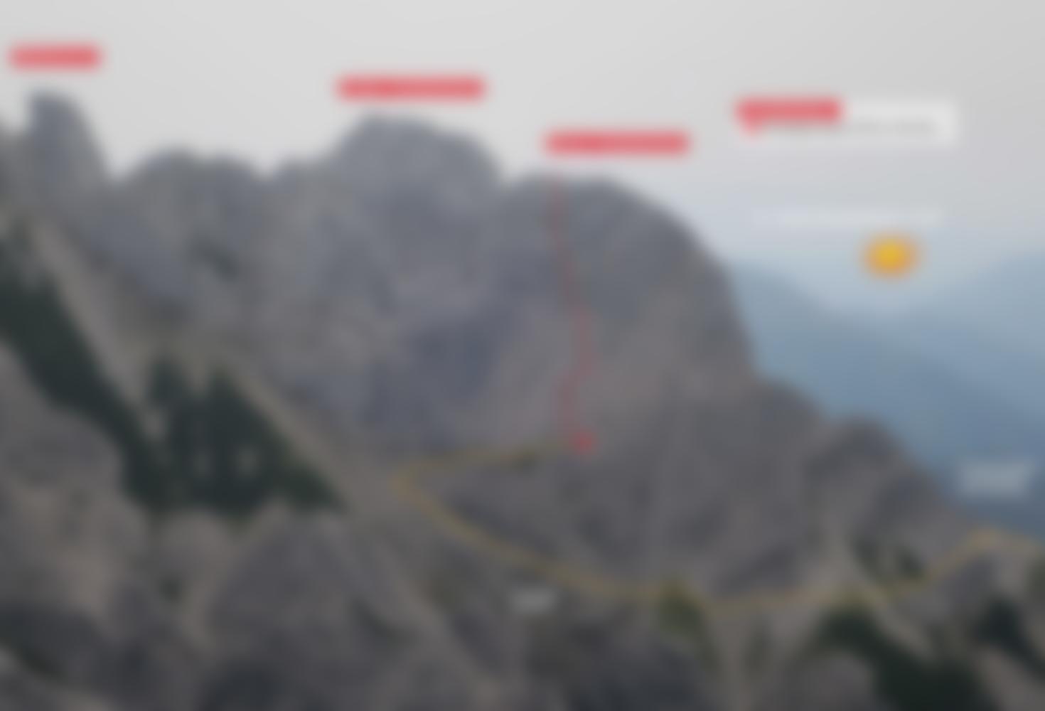 Der letzte Abseilstand (nach 2. SL) ist nicht der Stand, von dem aus die 3. SL geklettert wird, sondern 7 m links davon. Beim letzten Abseiler unbedingt anpendeln, um das grasige Schrofenband zu erreichen. Dann nach links zum Einstieg gehen und den/die Zweite/n zu sich ziehen.