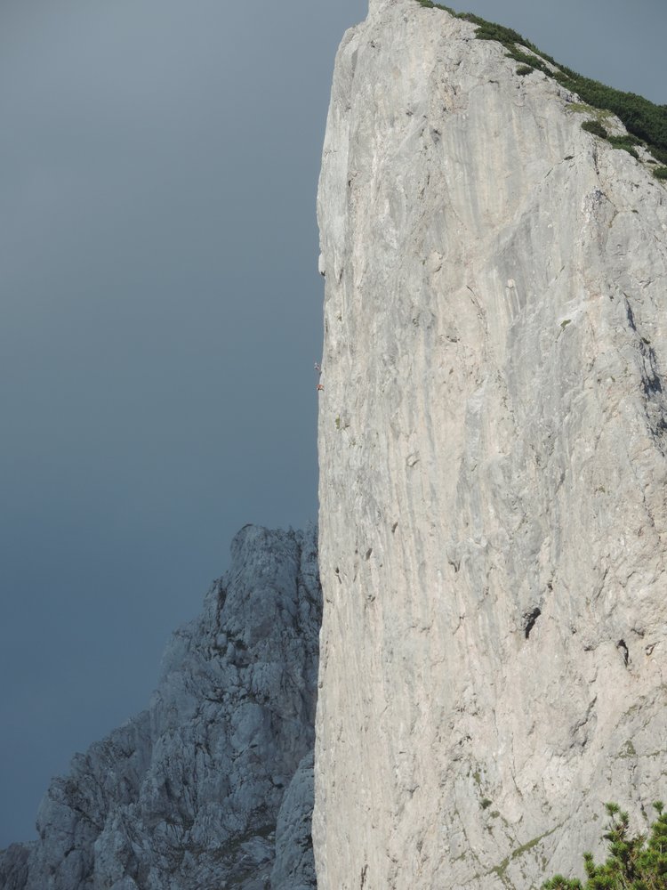 SL 2 7c+: Der Fels in den ersten 10m war zu Beginn sehr splittrig, daher sind die Abstände hier sehr knapp. Die Passage ist jetzt aber recht gut ausgeputzt und klettert sich auch lässig. Nach der Schlüsselstelle am Dacherl wird der Fels 1A, zum Stand gibt es einen langen technischen Quergang mit einem kräftigen Runout. Hat sich beim Bohren so ergeben, gehört jetzt wohl dazu. Auch für den Nachsteiger interessant.