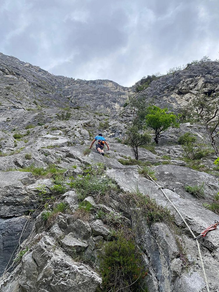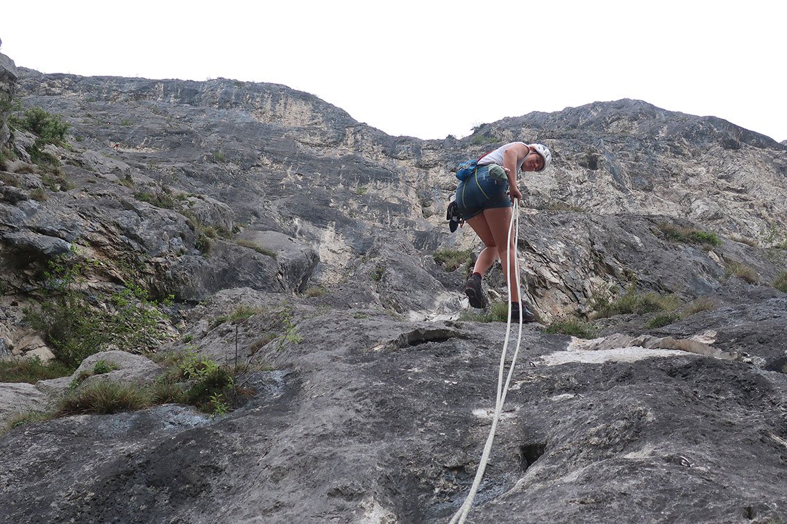 14 Expressschlingen, 70 m Einfachseil und HELM nicht vergessen.
