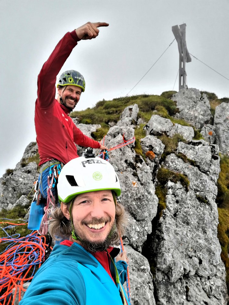 Erste Rotpunkt-Begehung: Roland Laucher & Hanspeter Gärtner am 10. August 2024.