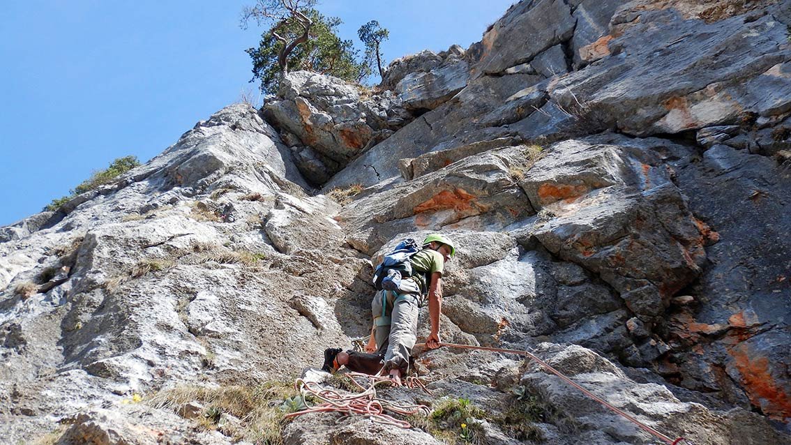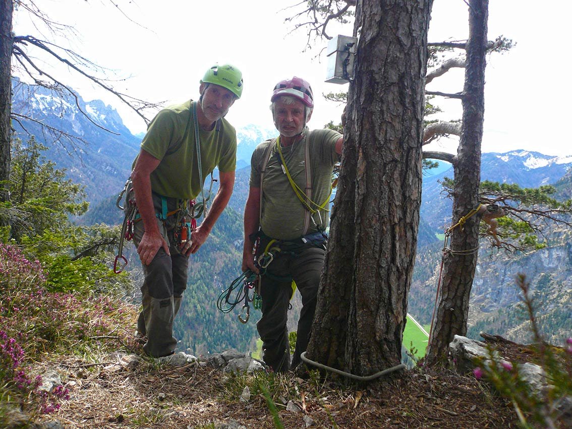 Sollten Kletterer in einer der beiden Routen sich befinden (Rabengold oder Gabi) wird vom Abseilen abgeraten - das Abseilen über die Tour wird nur im Notfall empfohlen