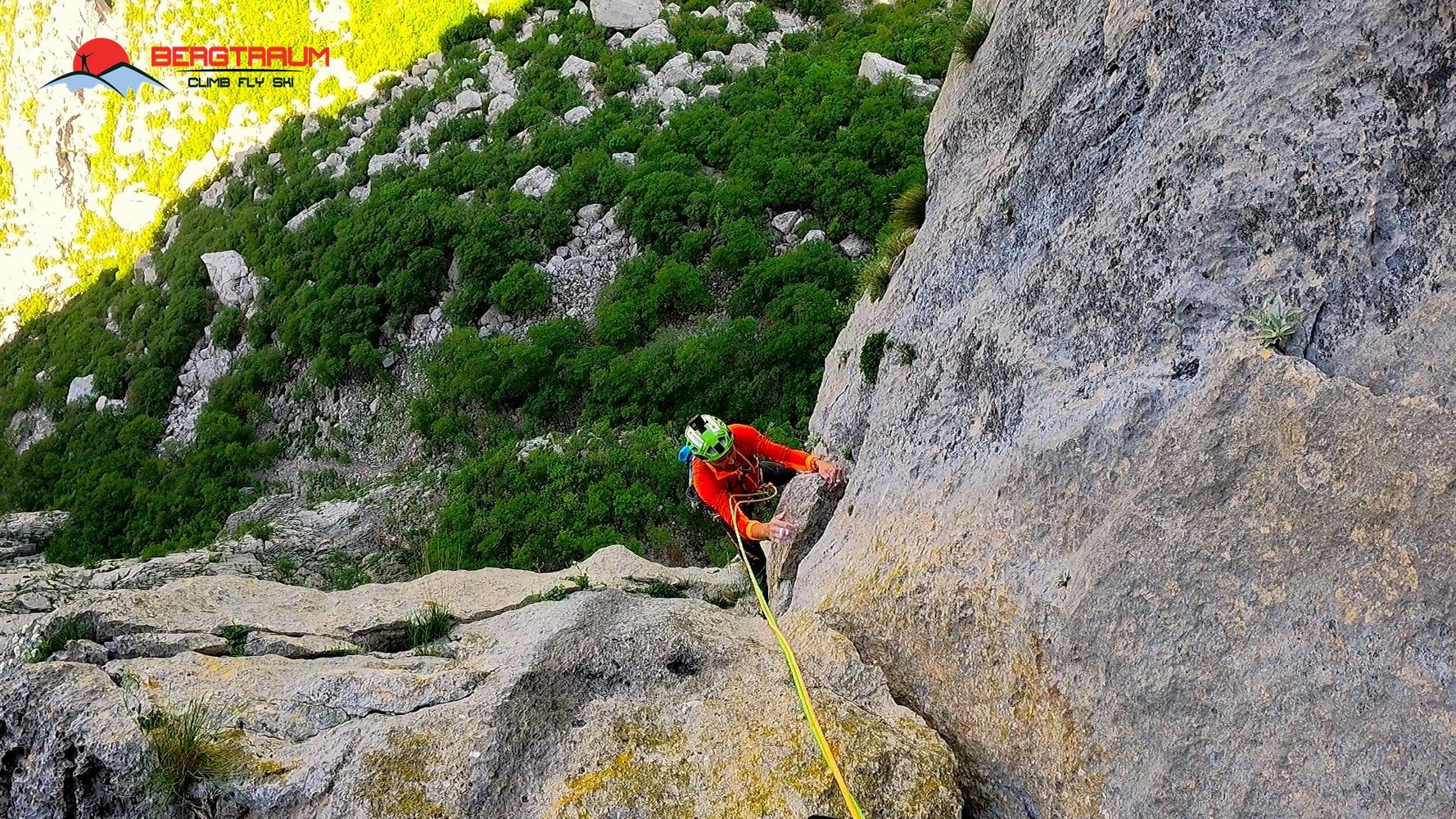 Eine anspruchsvolle Linie im Sektor Trapez des Anica Kuk. Die Tour ist Remy- typisch schwer und technisch. Es stecken wenige Bohrhaken, dazwischen ist selbst für die Absicherung zu sorgen. Die SL 7 und 8 können auch zusammengehängt werden.