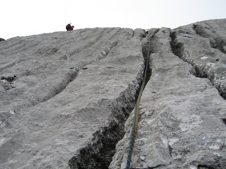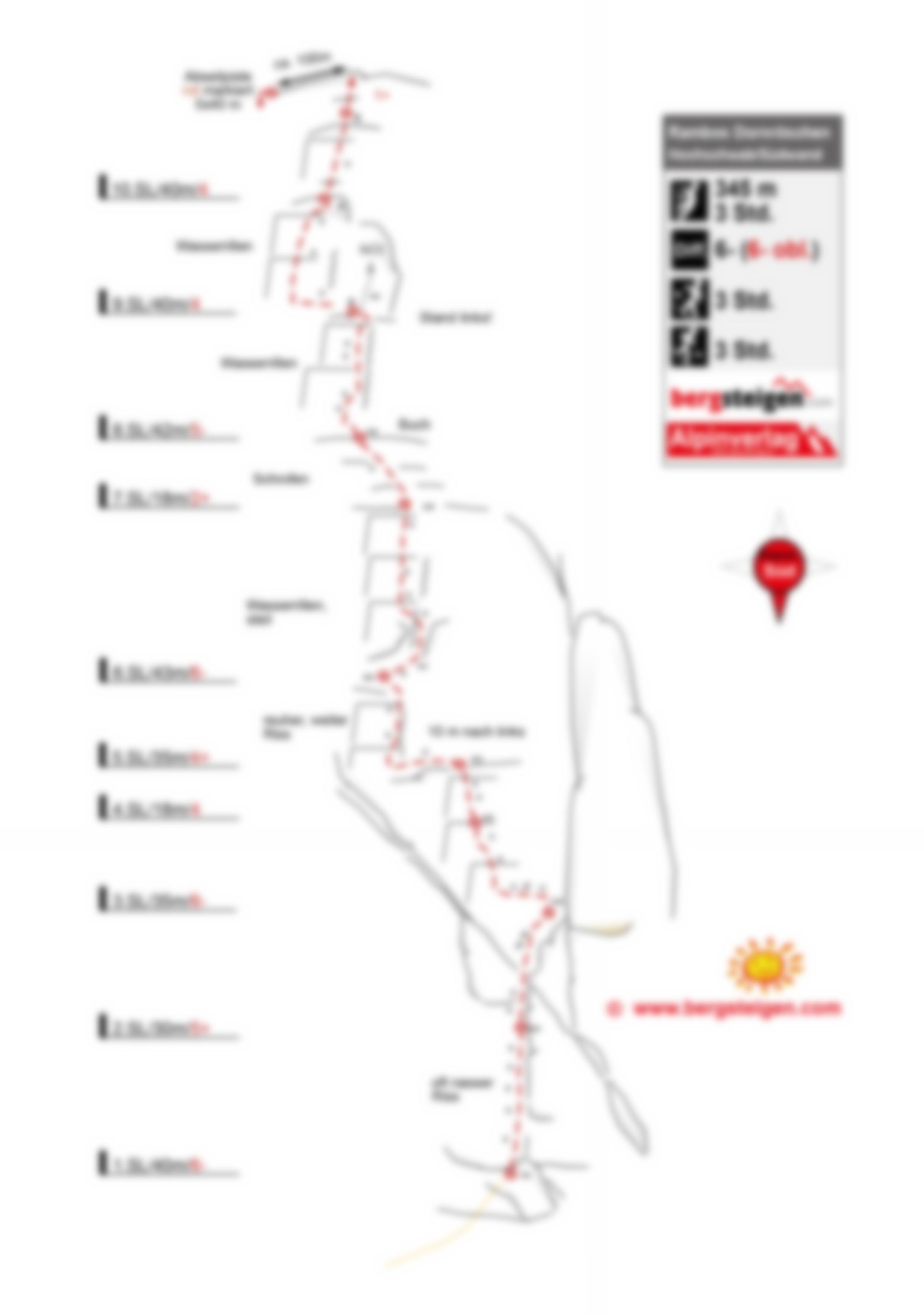 Zehn Seillaengen 6-, (6-, obl.): 6-, 5+, 6-, 4, , 4+, 6-, 2, 5-, 4- und 4