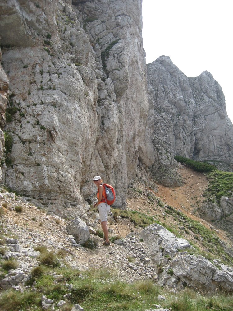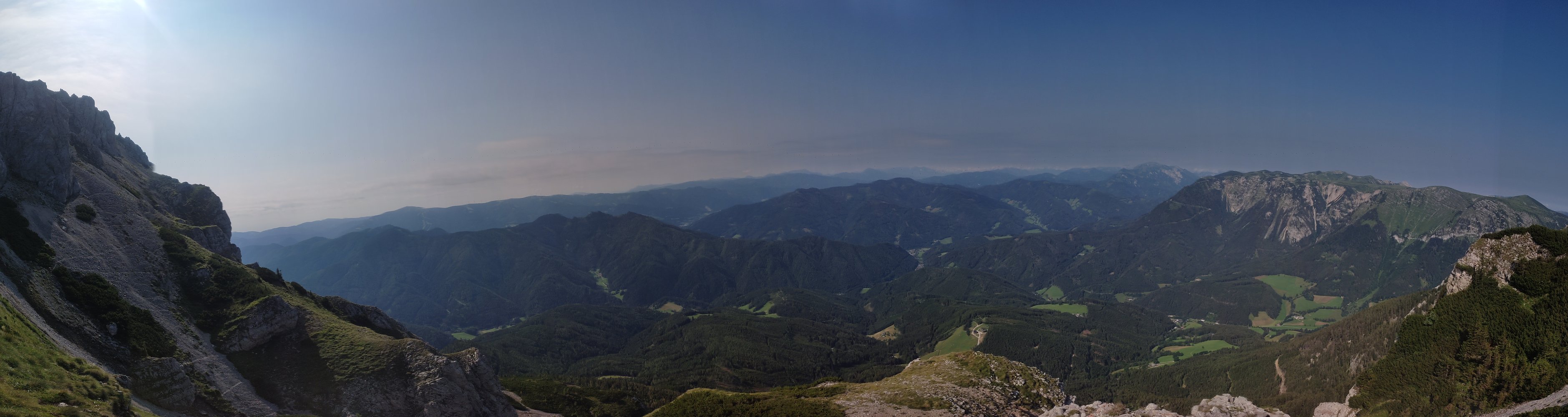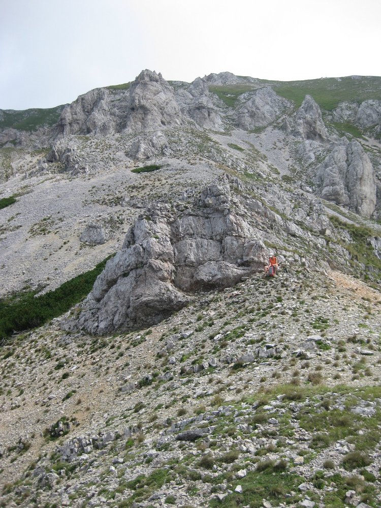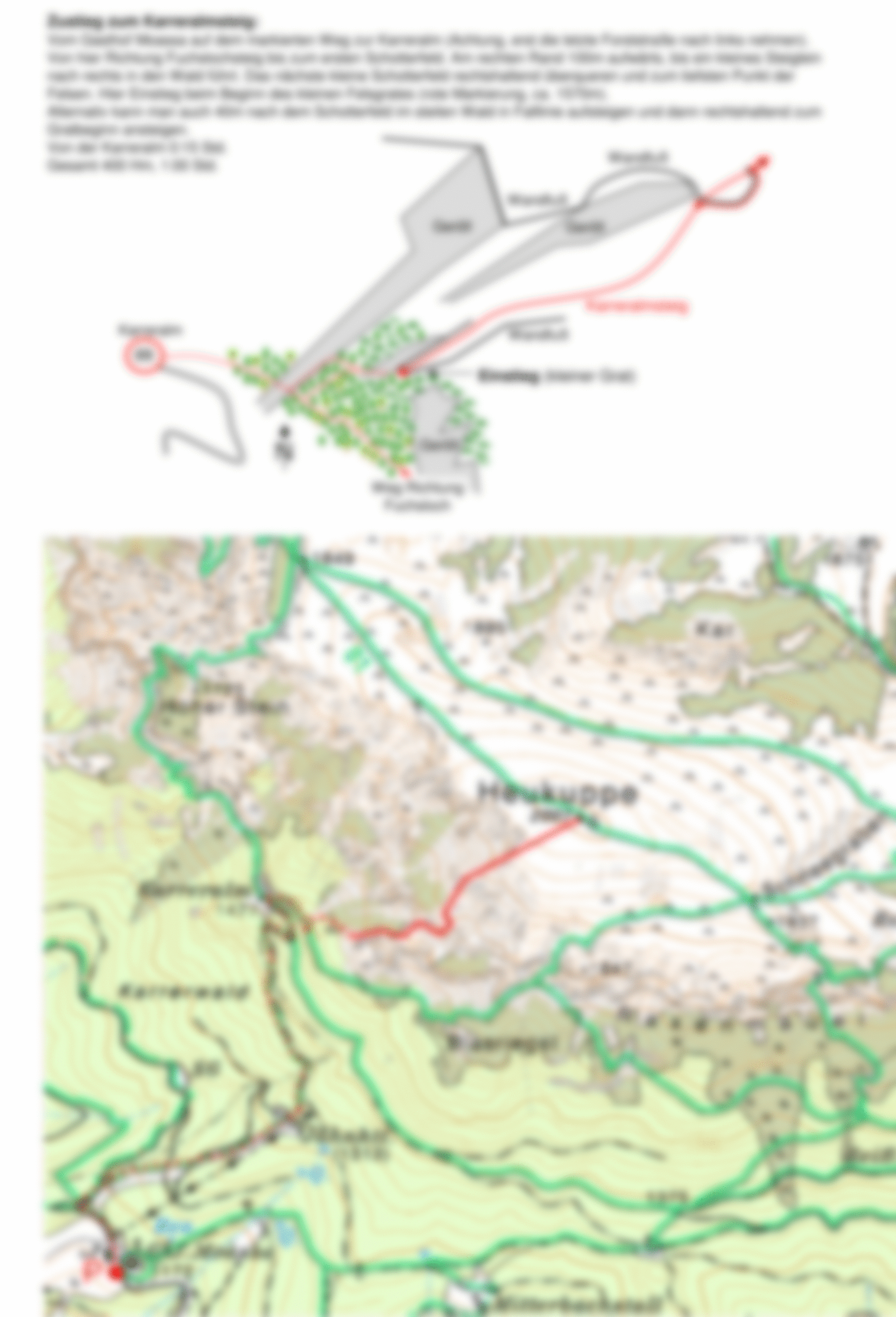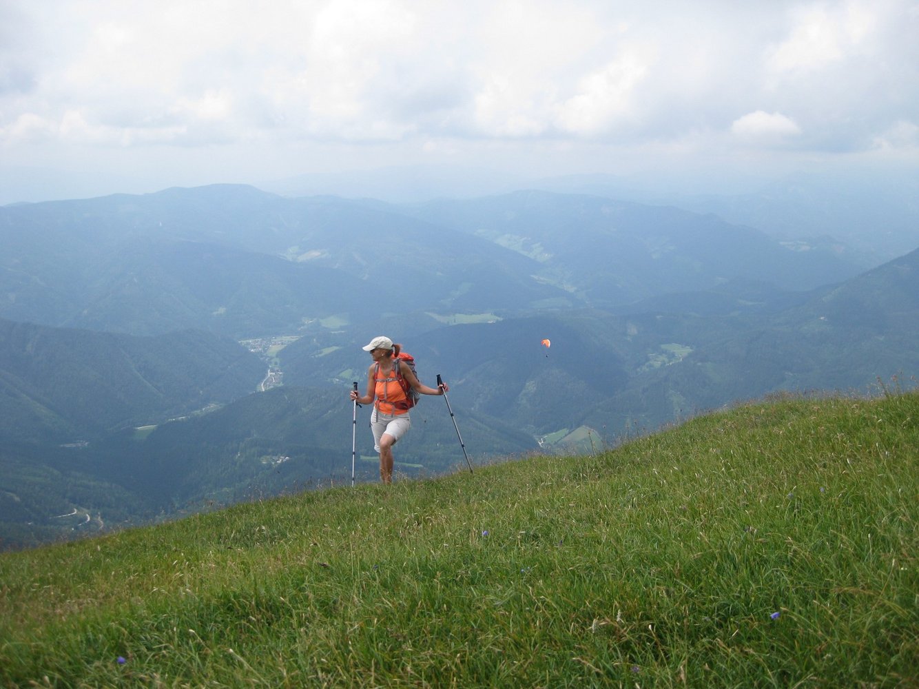 b) Über den Fuchslochsteig (markiert, eine Kletterpassage 1+): Von der Heukuppe nach Südosten bis zu einem Wegweiser, dann nach Südwesten zur Karreralm.