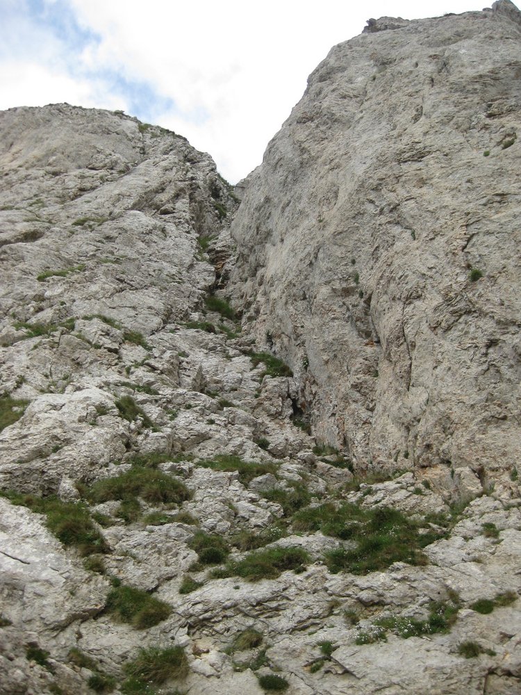 Eine weitere Variante führt durch einen langen Kamin rechts der Originalroute hinauf, ist mit 4- bewertet und sieht auch nicht einladender aus.