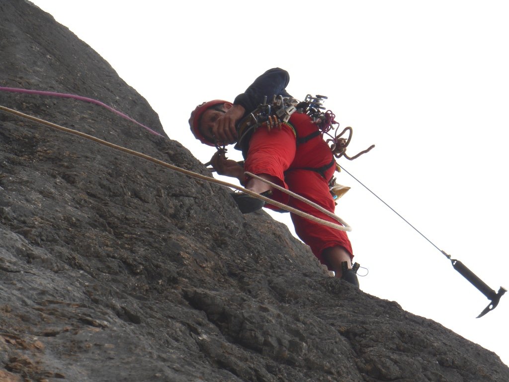 Im Gelände bis VII- teilweise anspruchsvolle Kletterei mit längeren Hakenabständen.
