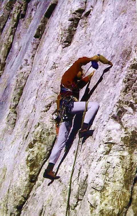 mit Bohrhaken durchgesichert und zusätzlich Keile. Route wurde im September 2004 saniert. Zusätzlich 12 Zwischenbohrhaken. Schlüsselstelle unverändert 7 obligat.