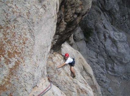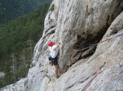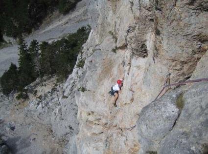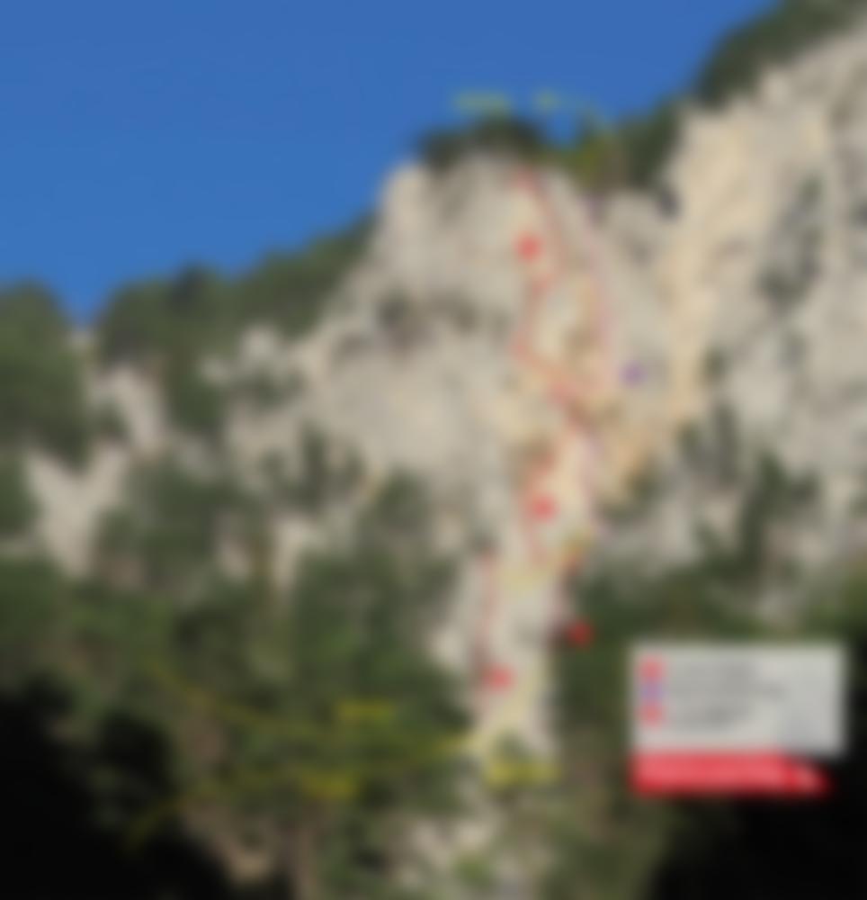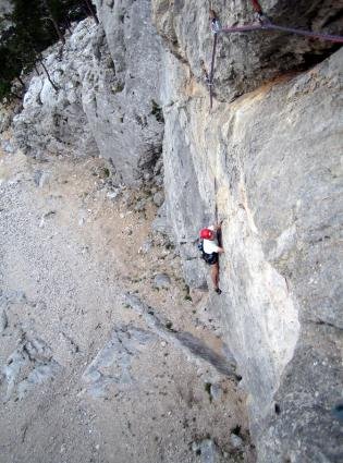 Sehr schöne und steile Kletterei am Südwestturm im Großofen. Der Fels ist rau, rot und supersteil. Die Absicherung ist perfekt. Sicher die beste Kletter-Tour im Großofen. Jüngst mit BH super saniert.
