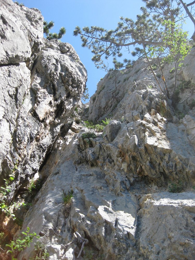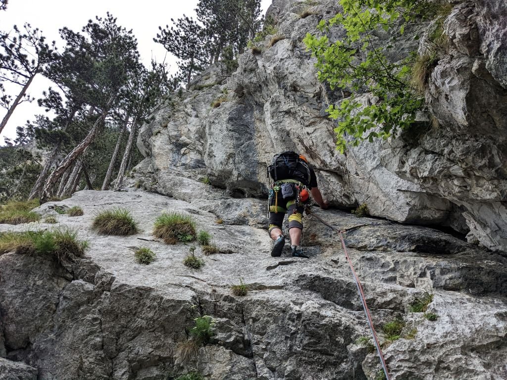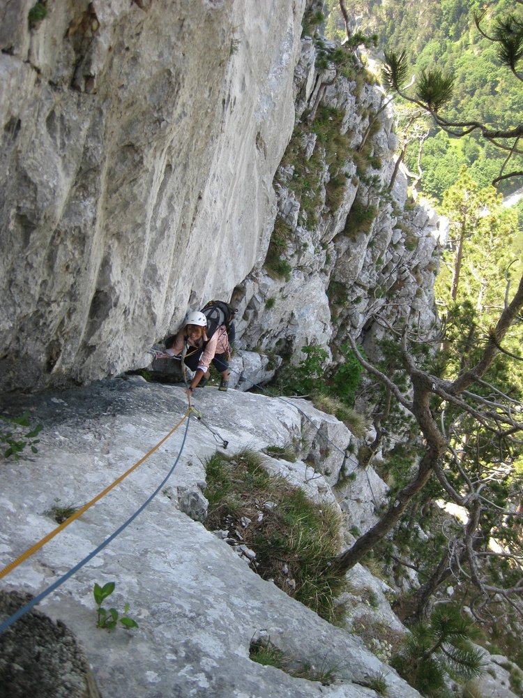 Trotz guter Absicherung ist die Route anspruchsvoll und alpin. Der Fels ist steil, rau und großteils fest, stellenweise aber auch nicht ganz verlässlich. Der Routenverlauf ist nicht immer logisch.