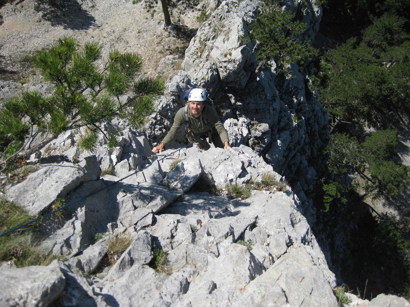 Alpine Kletterausrüstung mit 50 m Einfachseil, Helm, 8 Expressschlingen und Bandschlingen für die Bäume. Friends sind hilfreich. Für den Geröllabstieg sind hohe und feste Schuhe empfehlenswert.