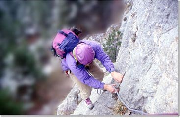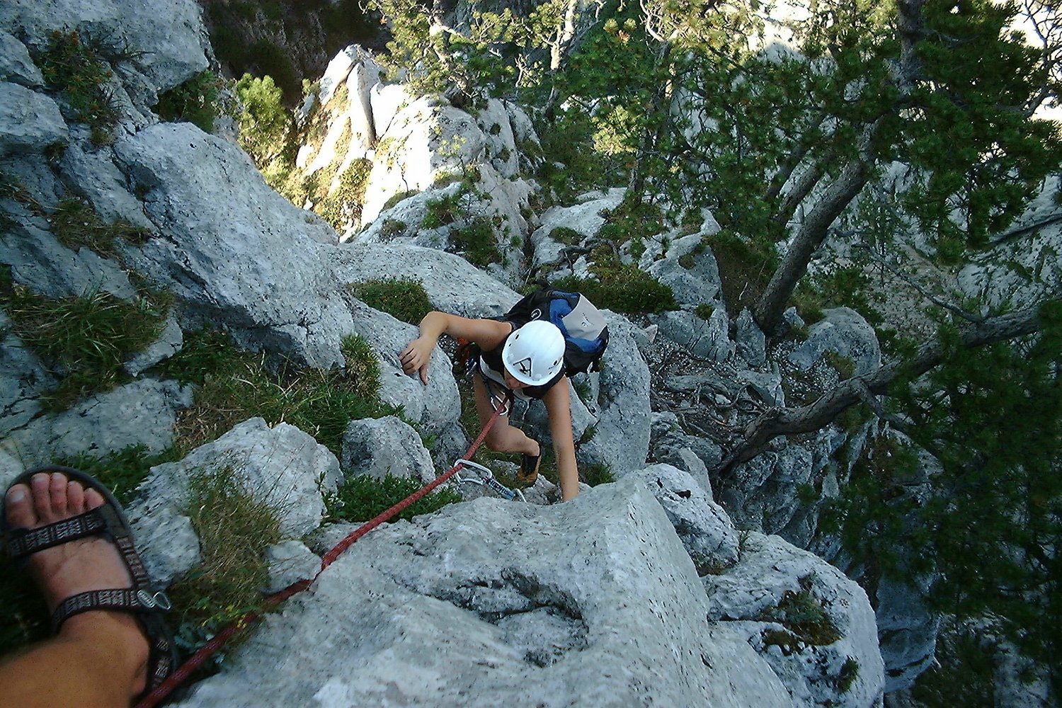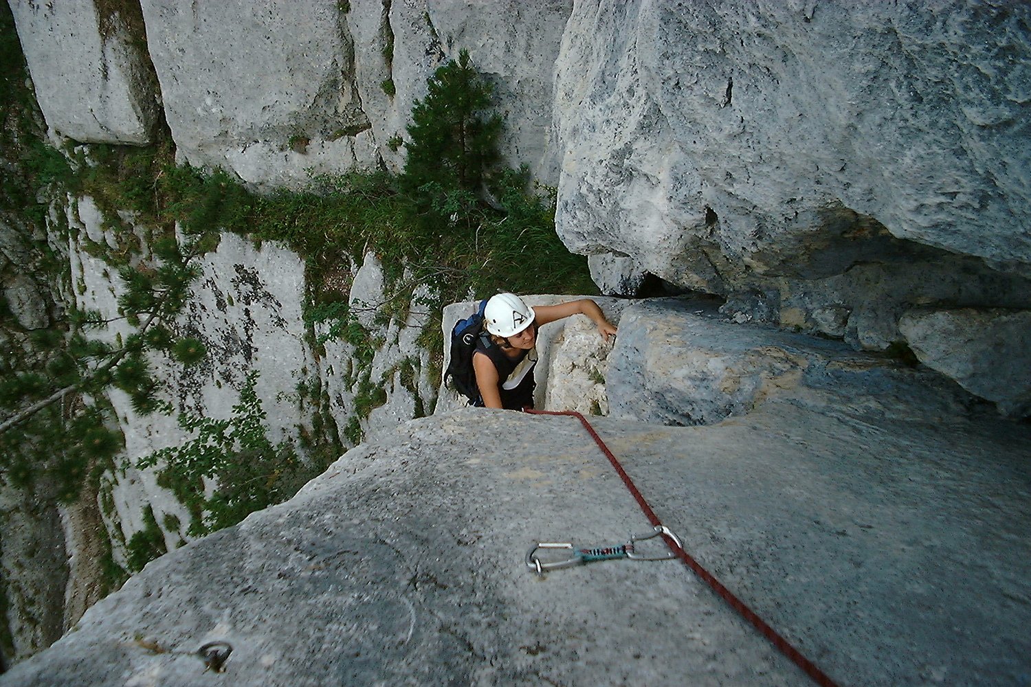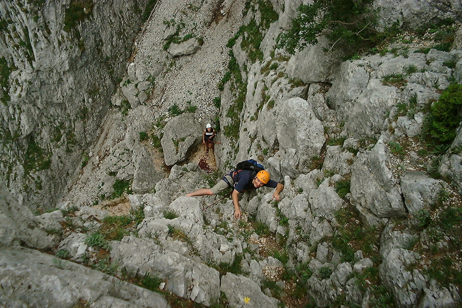 Beim Klemmblock extreme Steinschlaggefahr durch den Seilersten. D.h. davor den Stand rechts machen.