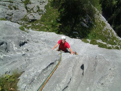 Der Einstieg ist rechts von der Verschneidung von www.fürunseremädels.com in einem unten etwas grasigen Felsteil.