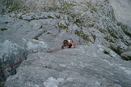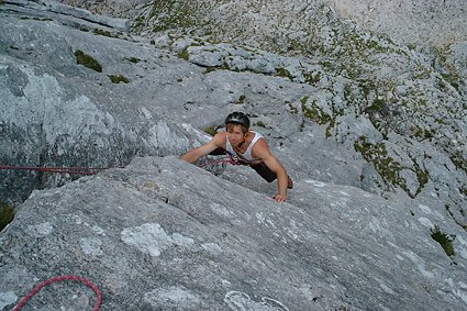 Sehr schöne Tour, die auch sehr gut abgesichert ist. Es dominieren steile Platten mit Henkeln und Rissen. Man kann auch nach der 3ten Länge den Porzellanpfeiler weiterklettern, was insgesamt eine sehr schöne Kombination ergibt. Die Tour an der exponierten Westkante ist nur etwas für sehr heiße Tage!
