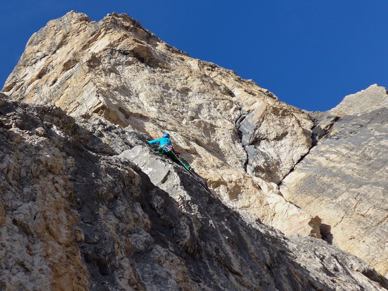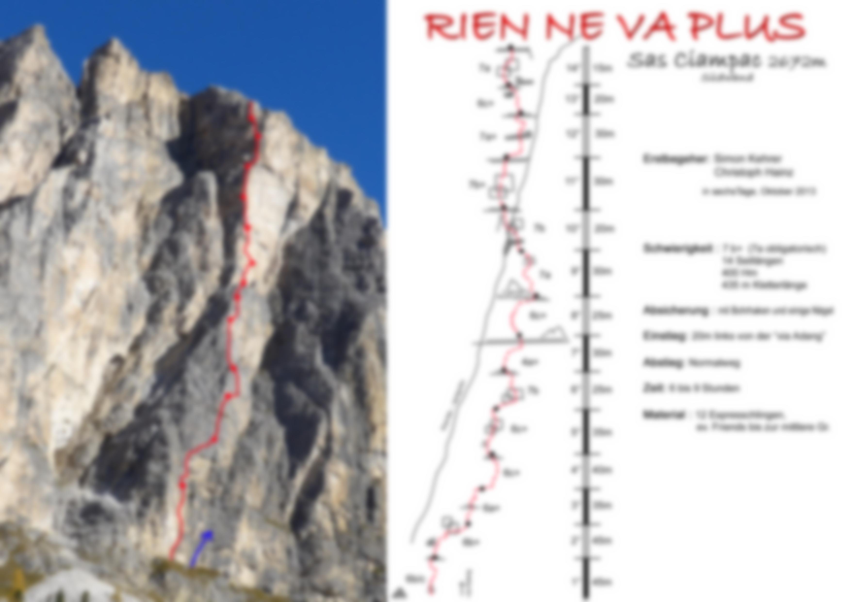 Ab der 10. Seillänge wechselt die Tour von der Süd- in die Westwand und folgt stets der besten Felsqualität. Auf Grund ihrer Ausrichtung empfehlen die Erstbegeher, ihre Route “Rien ne va plus” im Frühjahr oder Herbst zu wiederholen.