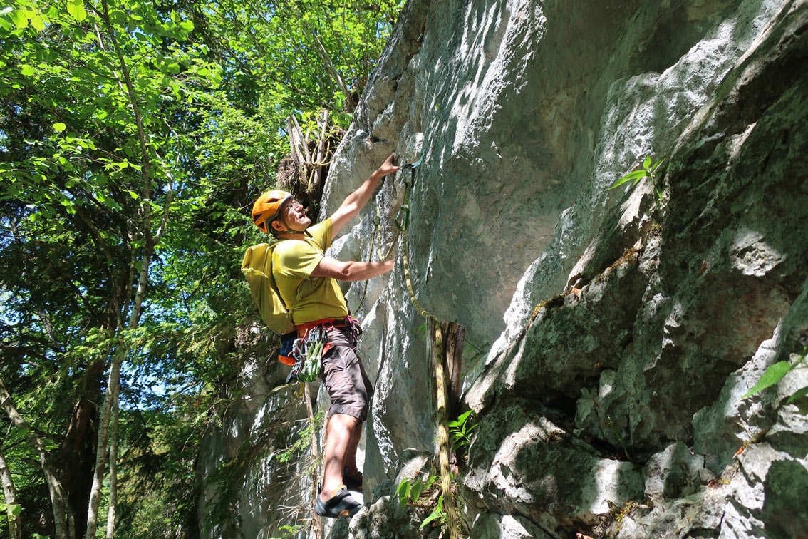 Die Tour wurde recht gut mit Bohrhaken und Sanduhrschlingen gesichert.