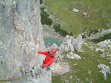Dieser Klassiker wurde mit neuen Bohrhaken ausgestattet und ist somit wieder als ungefährliche Genußtour einzustufen. Die Sanierung beschränkt sich aber auf die Stände und einigen Zwischenhaken. Die Kletterei ist für diesen Schwierigkeitsgrad als schön einzustufen und der Fels ist meist fest. Gesamteindruck inkl. Wanderung über den Zireinersee ist perfekt, ein landschaftliches Erlebnis !