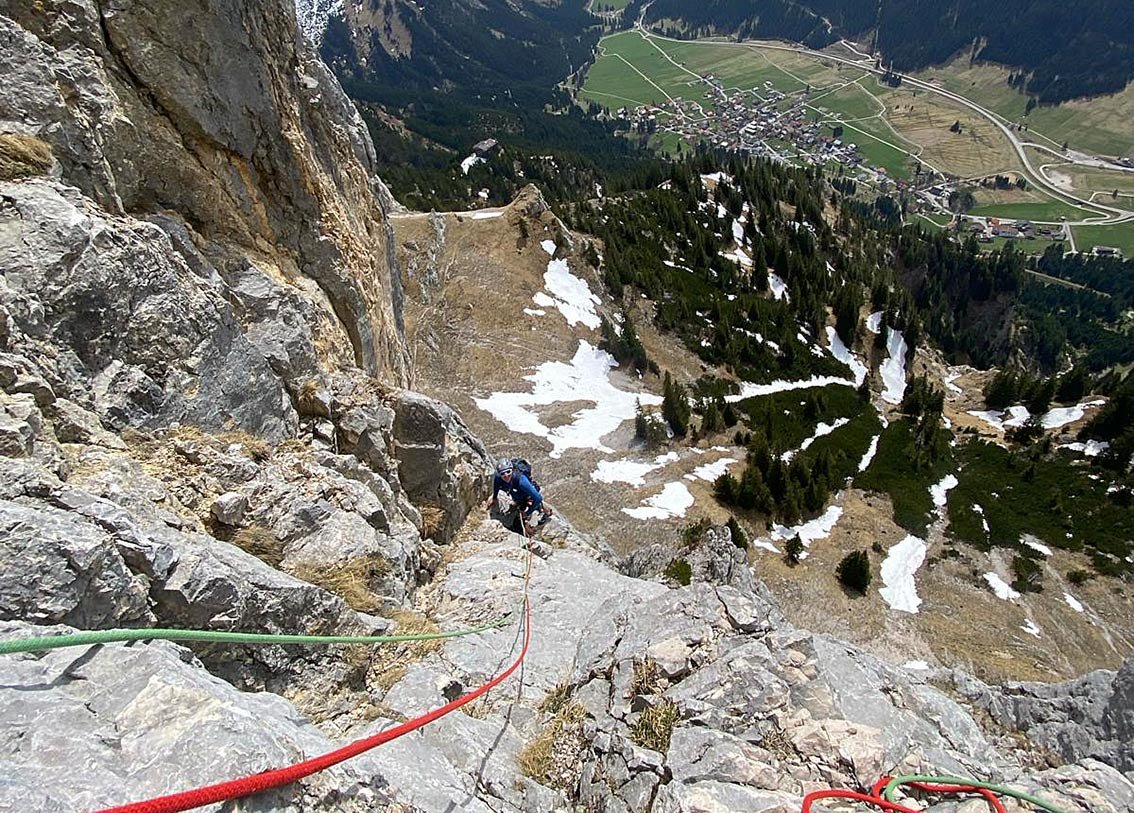 Neben der Südverschneidung gehen sehr nahe noch andere Routen auf die Rote Flüh, und kleine Verhauer sind so recht verlockend.