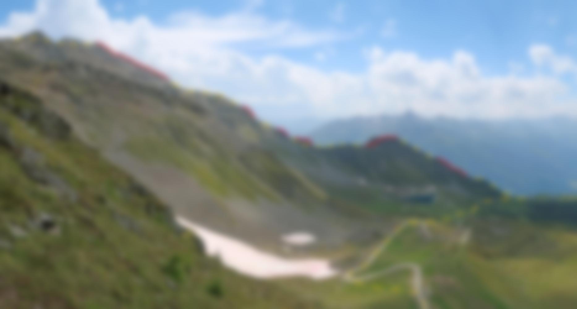 Vom Gipfel über den markierten Wanderweg 515 (Stellen A) Richtung Cima Ross absteigen. Der Hauptgipfel des Rotenkogels und der Gorner werden jeweils knapp umgangen, können aber mit wenig Aufwand "mitgenommen" werden. Von der Cima Ross über die Skipiste zurück zur Bergstation absteigen.